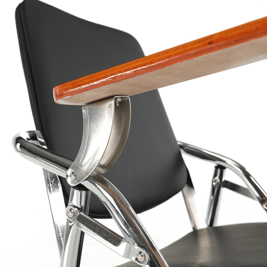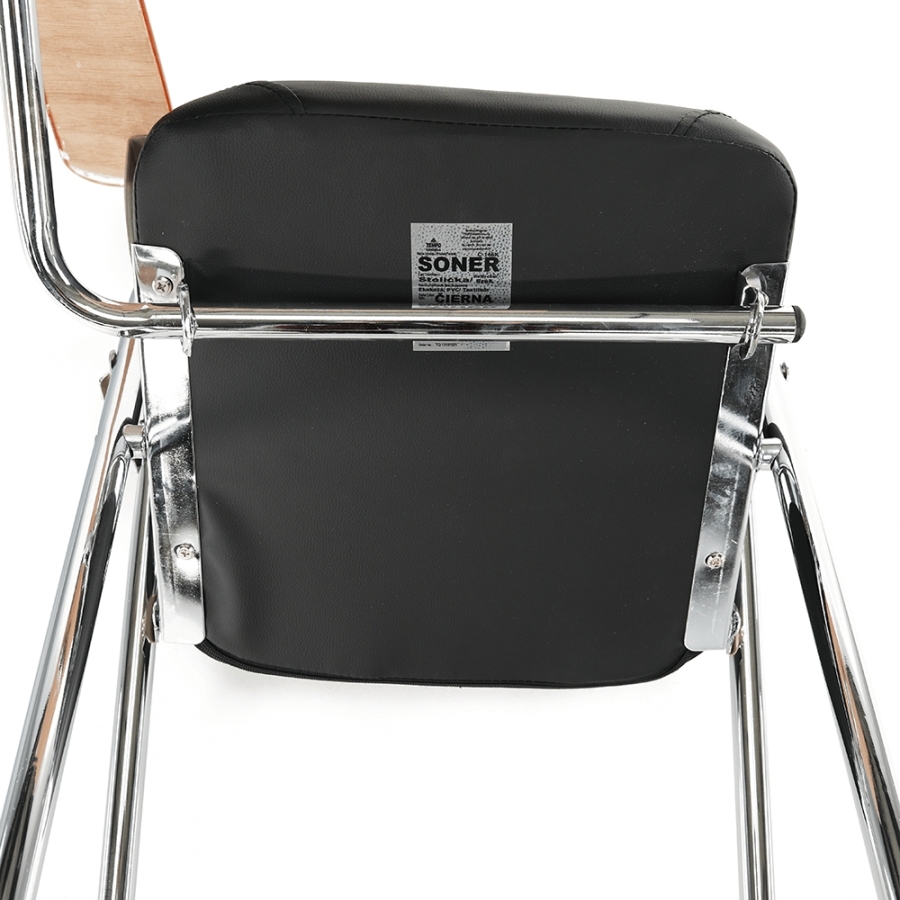 Szék tárgyalóterembe írólappal SONER Anyag: textilbőr/fa/fém A szövet kopásállósága: 100 000 Martindale Szín: fekete/natúr/króm Méretek (SzéxMéxMa): 51x85x84 cm Ülésszélesség : 39 cm Ülésmagasság: 42 cm Ülésmélység : 40 cm Háttámla (SzéxMa): 39x40 cm Deszka vastagsága (SzxM): 47x46/60 cm Deszka vastagsága: 1,5 cm