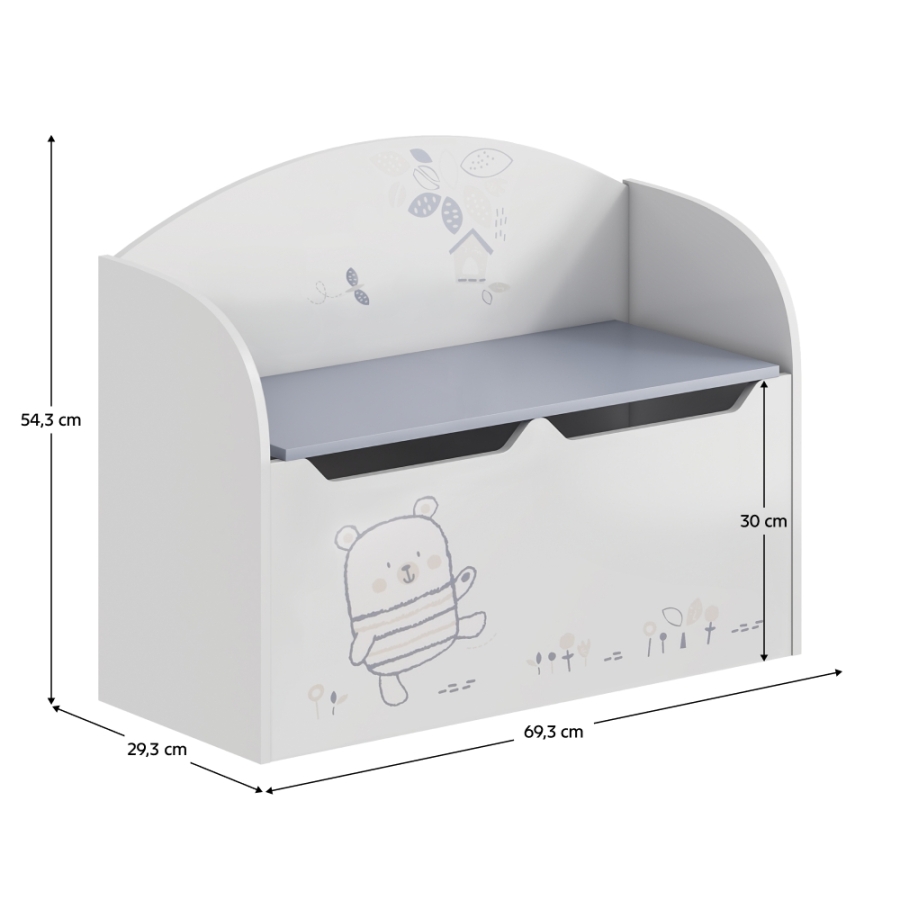 Anyag: MDF Szín: fehér Méretek (SzxMéxMa): 69,3x29,3x54,3 cm Láda teherbírása: 30kg Nyitás/zárás csukó mechanizmussal Két nyílás a nyitáshoz/záráshoz Praktikus tároló doboz Paddal Játékokhoz, ruhákhoz, ágyneműhöz Ideális gyerekszobákba Szétszerelve szállítva