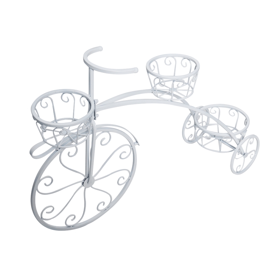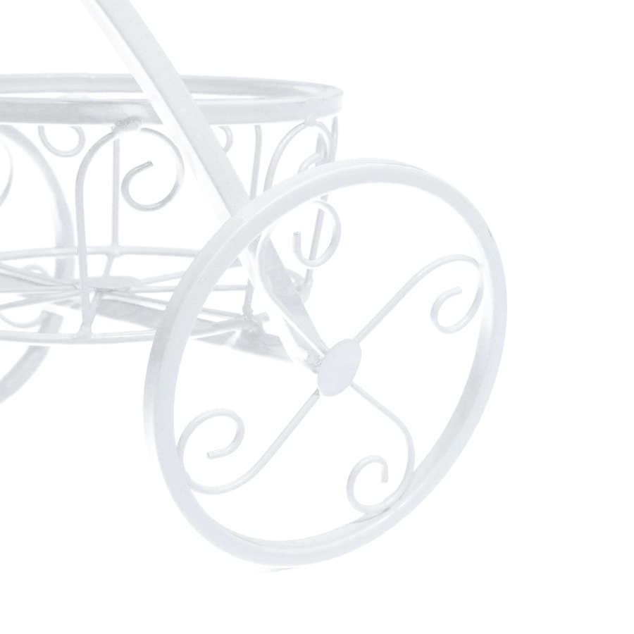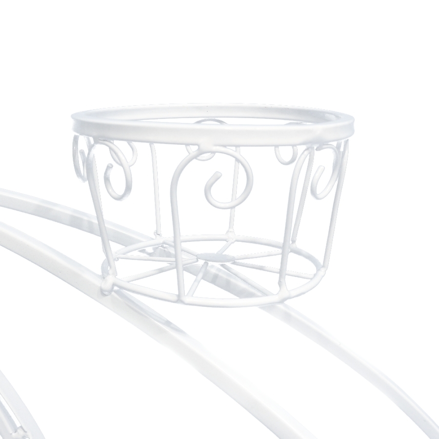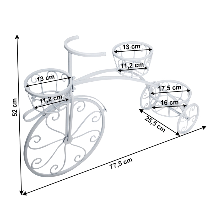 Anyag: fém Szín: fehér Méretek (SzéxMéxMa): 77,5x25,5x52 cm A kisebb virágcserepek alsó és felső átmérője: 11,2/13 cm A nagyobb virágcserepek alsó és felső átmérője: 16/17,5 cm Retro stílusban Összeszerelve szállítva
