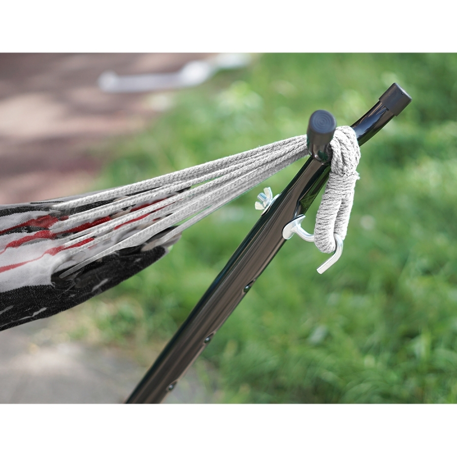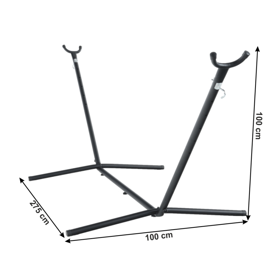 Kerti állvány függőágyhoz OTAN NEW TIP 3. Anyag: acél Szín: fekete Méretek (SzéxMéxMa): 300x100x100 cm Maximális teherbírás: 120 kg Praktikus csomagban szállítva Bontásban szállítva.