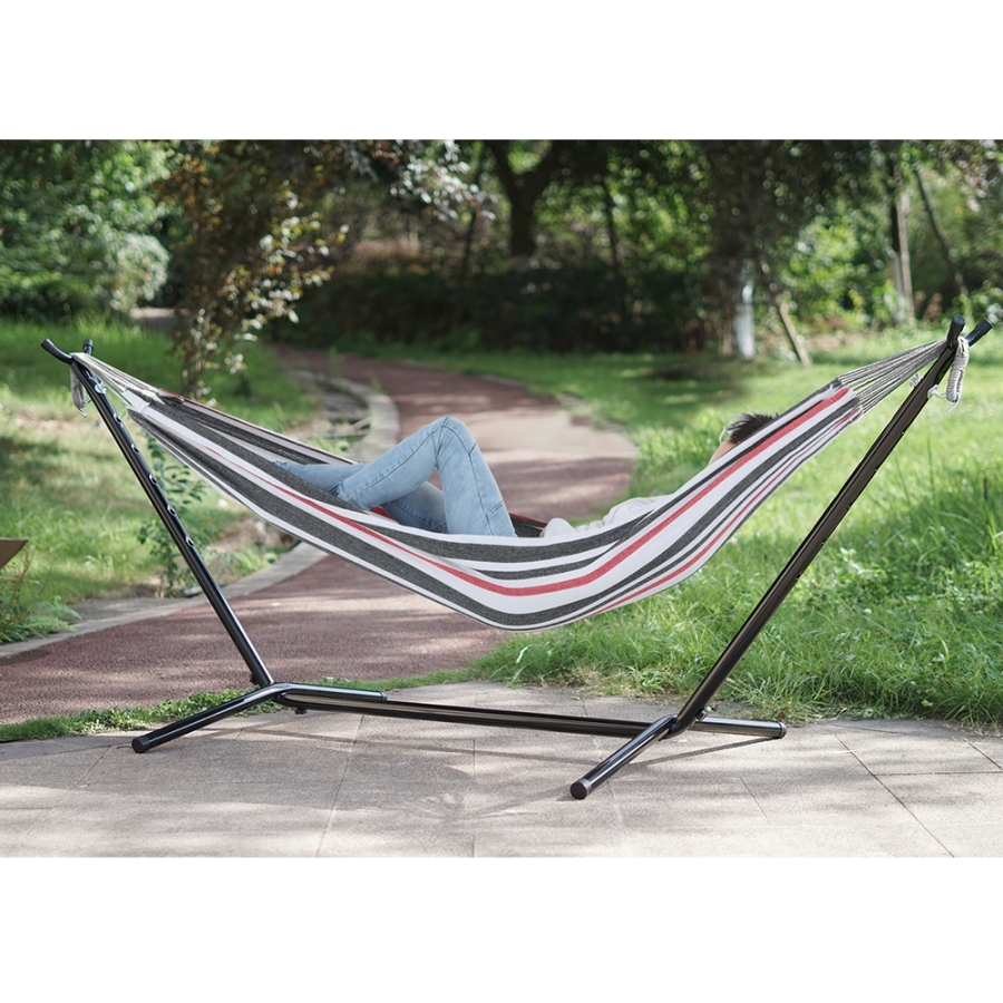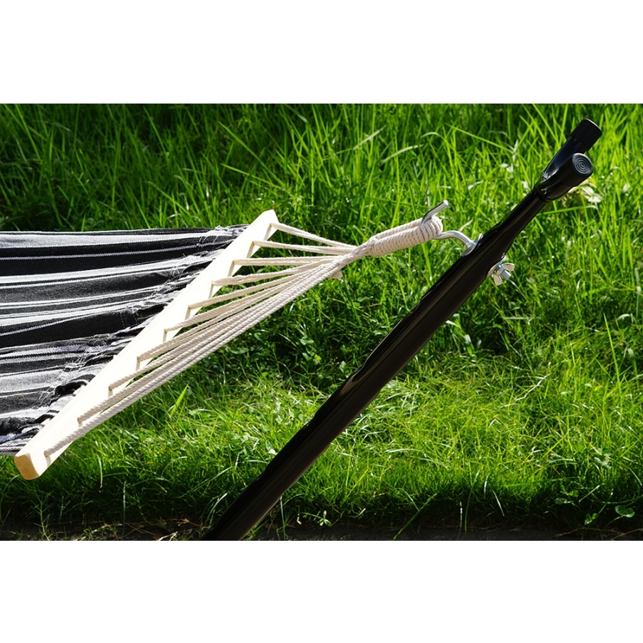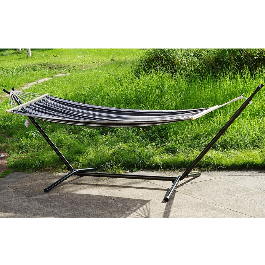 Kerti állvány függőágyhoz OTAN TYP 1. Anyag: acél Szín: fekete Méretek (SzéxMéxMa): 300x120x110 cm Maximális teherbírás: 120 kg Praktikus csomagban szállítva Bontásban szállítva.