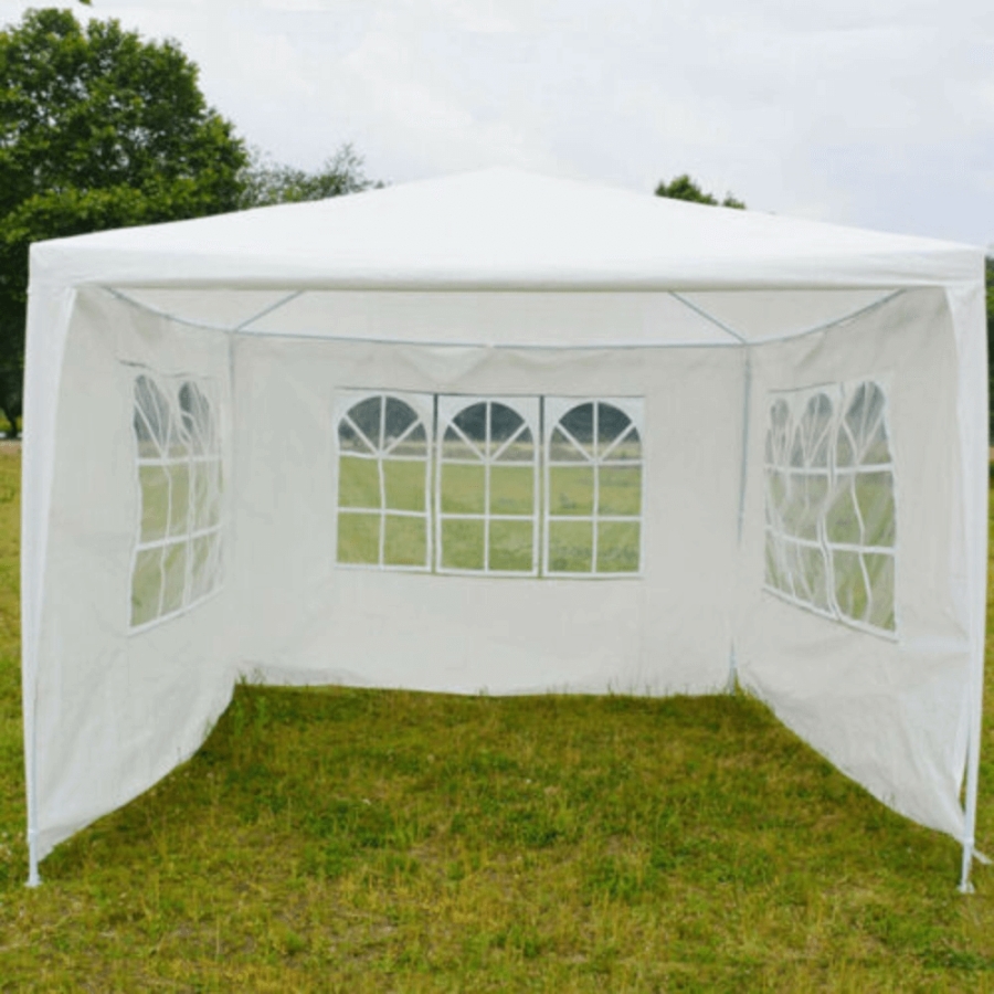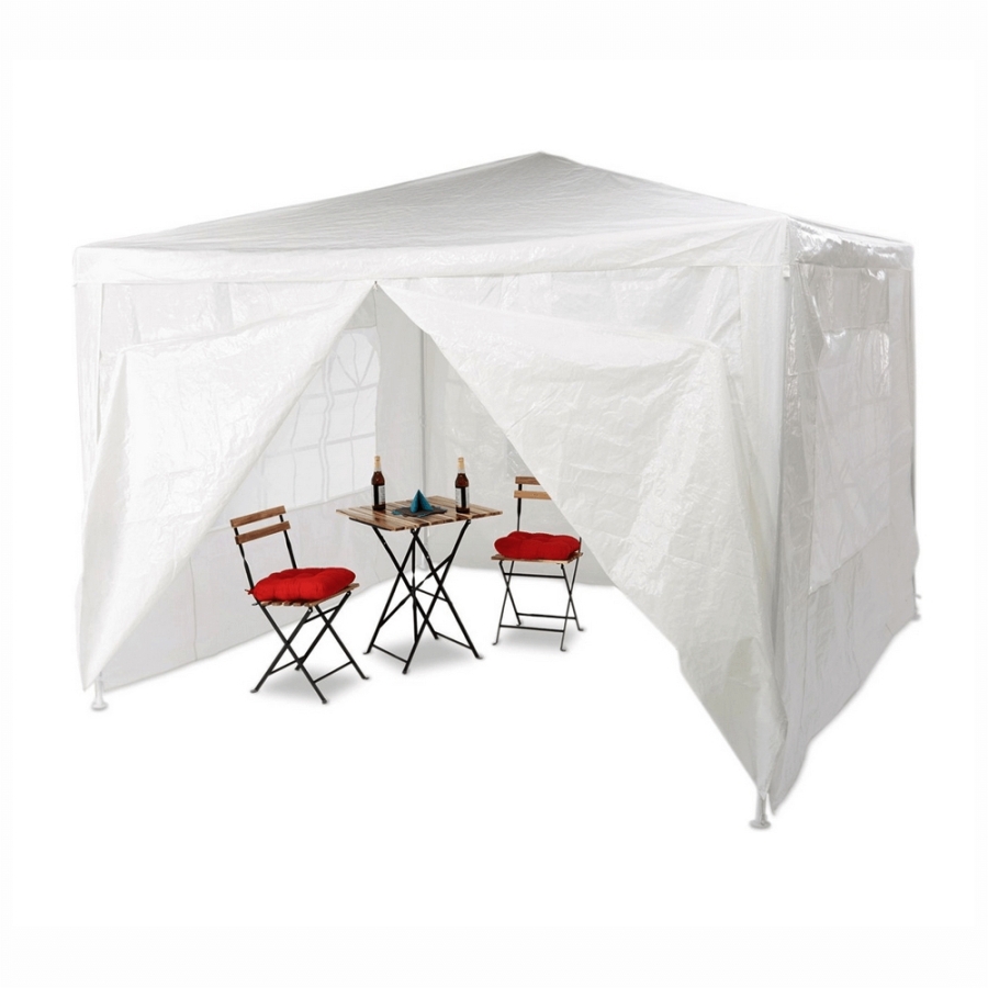 Kertisátor TEKNO 1 Anyag: 100% polietilén/acél Színe: fehér Méretek (SzéxMéxMa): 300x300x245 cm Vízálló 4 oldalsó fal 3 átlátszó ablak Az egyik fal cipzárral van felszerelve (bejárat) Oldalsó fal levehető Ellenáll az UV-sugárzásnak Védelem a napsugarak és enyhe eső elől Szállítás: szétszerelve Gyártó ajánlása: A sátrat ne tegye ki rossz időjárás és erős eső hatásának. A sátrat nem ajánlatos használni a téli hónapokban, amikor nehéz hó veszélyeztetheti.