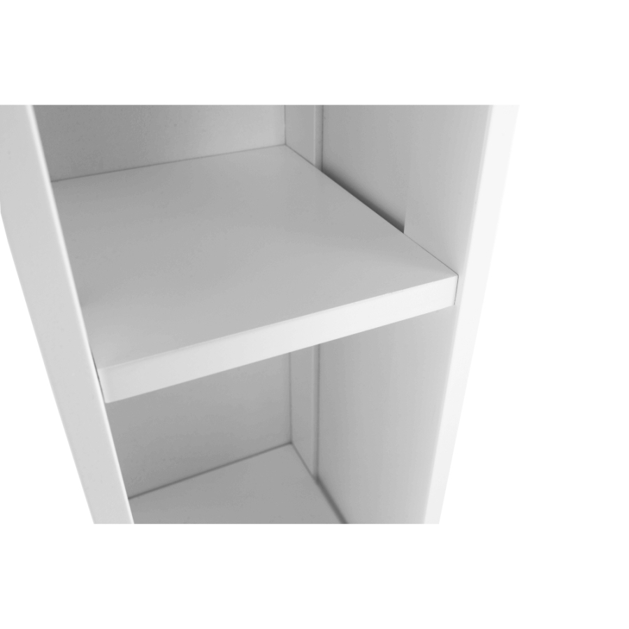 ATENE TYP 6 keskeny polcos elem Színváltozat: fehér Anyag: MDF Méretek (SzéxMéxMa): 17x17x80,5 cm Szállítás szétszerelve.