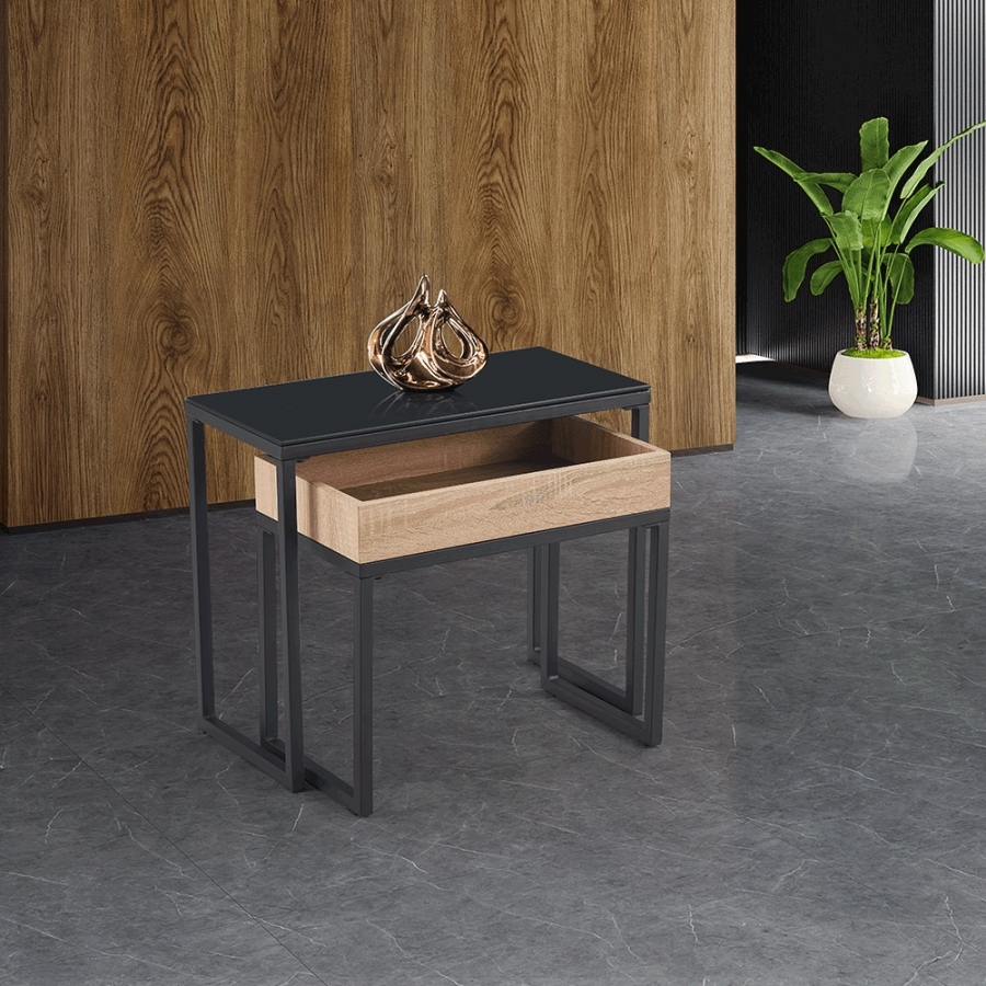 Két darabos dohányzóasztal szett, tölgy/fekete, DAGOR
