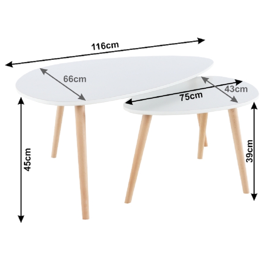 Két részes asztal szett, fehér/bükk, FOLKO NEW