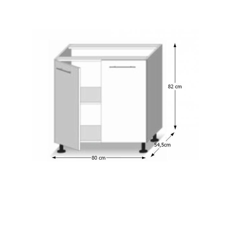 Kétajtós alsószekrény az elemes konyhabútorból modern stílusban és változatban