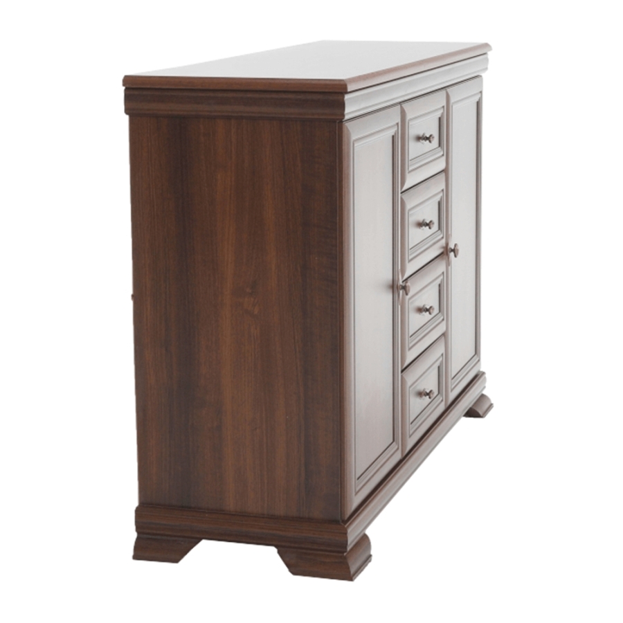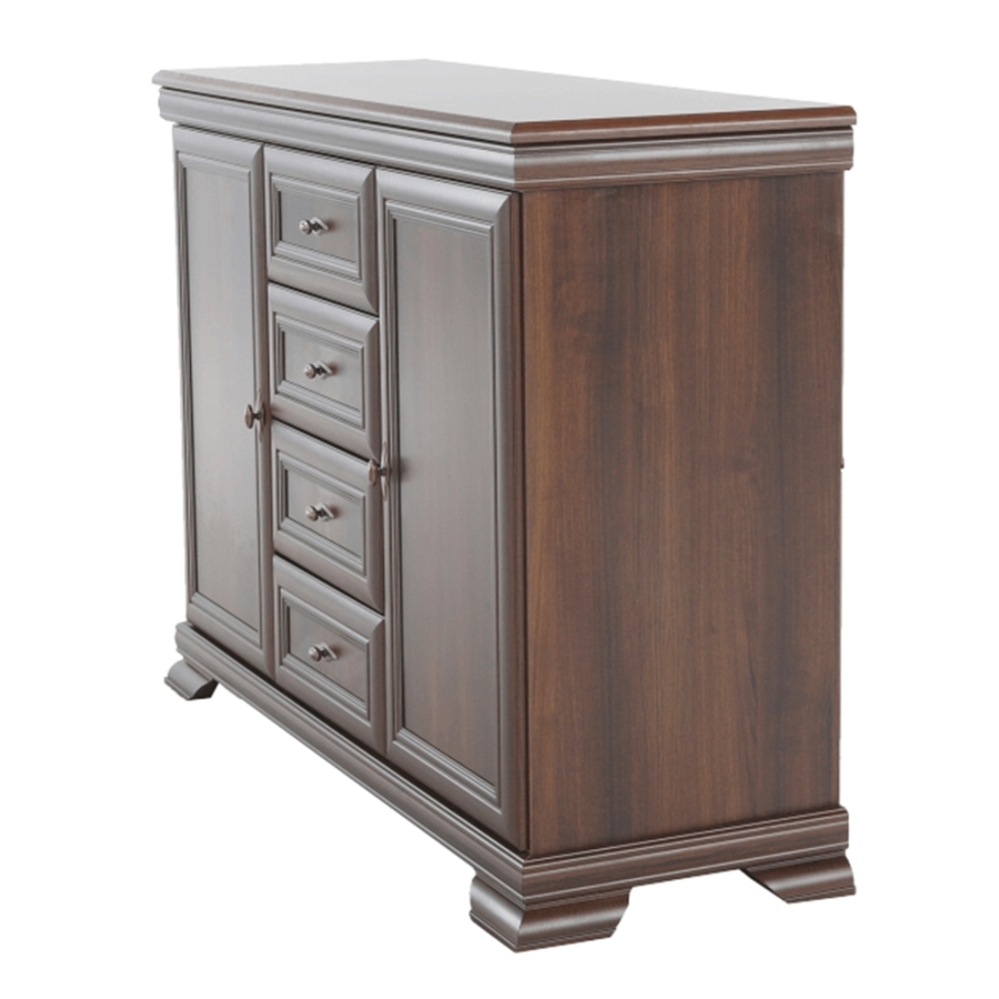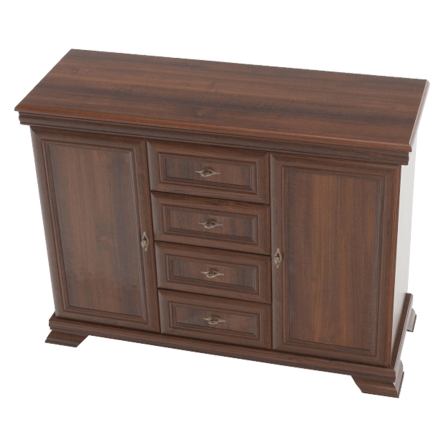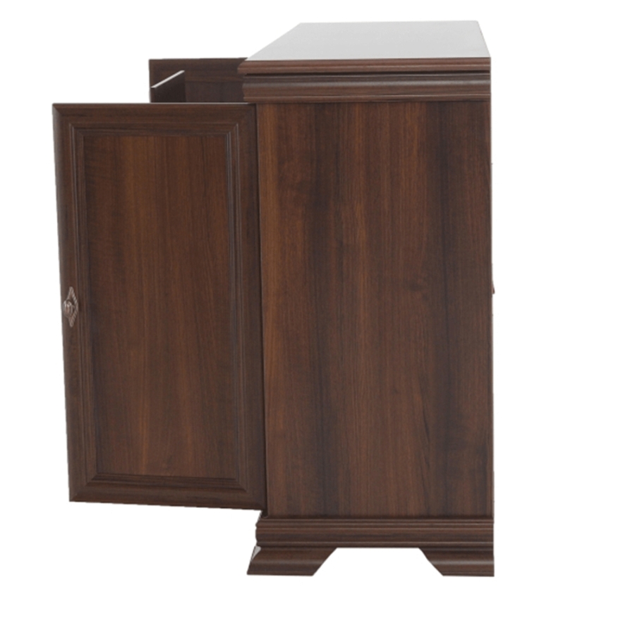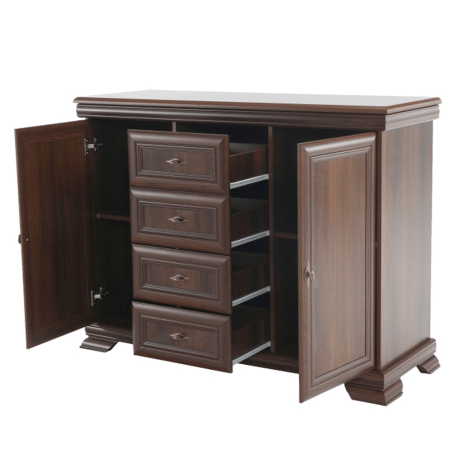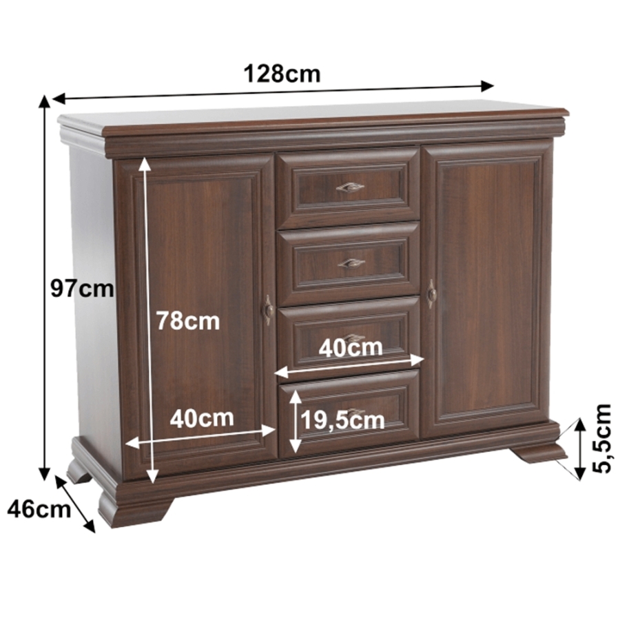 Kétajtós komód fiókokkal, KORA KK3 Változat: laminált DTD/MDF lécek/fém fogantyúk Színváltozat: samoa king Méretek (SzéxMéxMa): 128x46x97 cm Váz vastagsága: 15 mm Felsőlap vastagsága: 22 mm Alsólap vastagsága: 22 mm Az alsó tér magassága a padlótól: 10,5 cm Szállítás: lapraszerelten