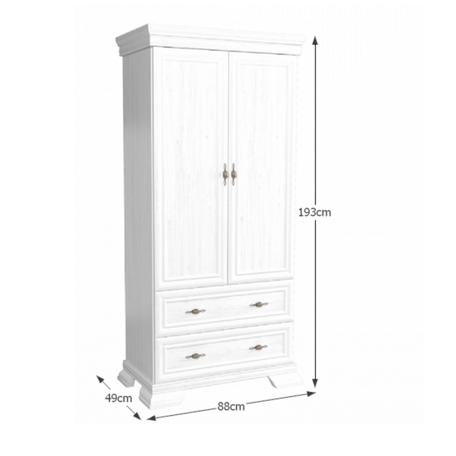 Kétajtós szekrény, KORA KS1 Színváltozat: andersen fenyő Anyag: laminált DTD, MDF, fém Méretek (SzéxMéxMa): 88x49x193 cm Az alsó tér magassága a padlótól: 10,5 cm