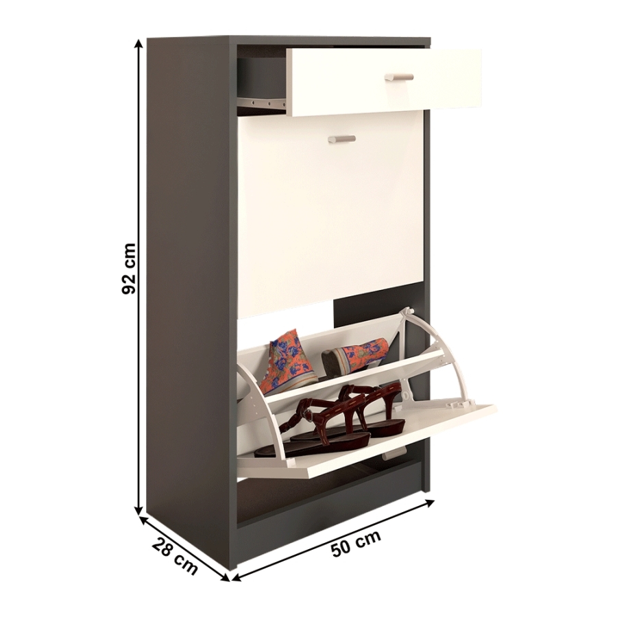 Kétrészes cipősszekrény, fehér/grafit, VIVAT NEW TYP 1