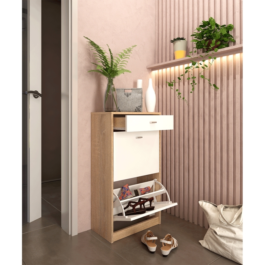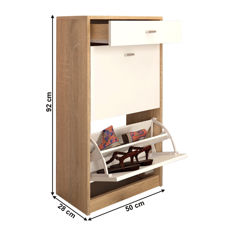 Kétrészes cipősszekrény, fehér/tölgy sonoma, VIVAT NEW TYP 1