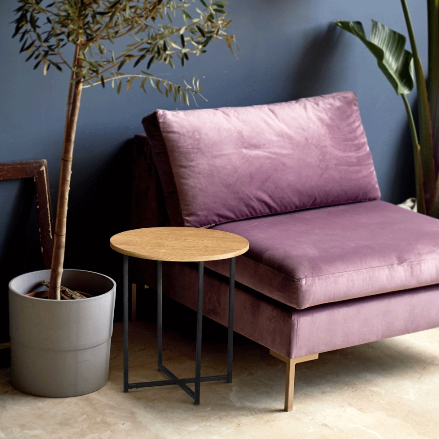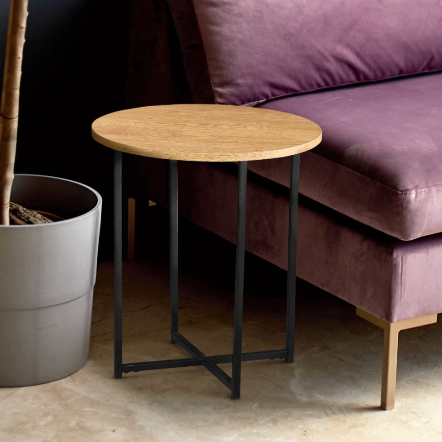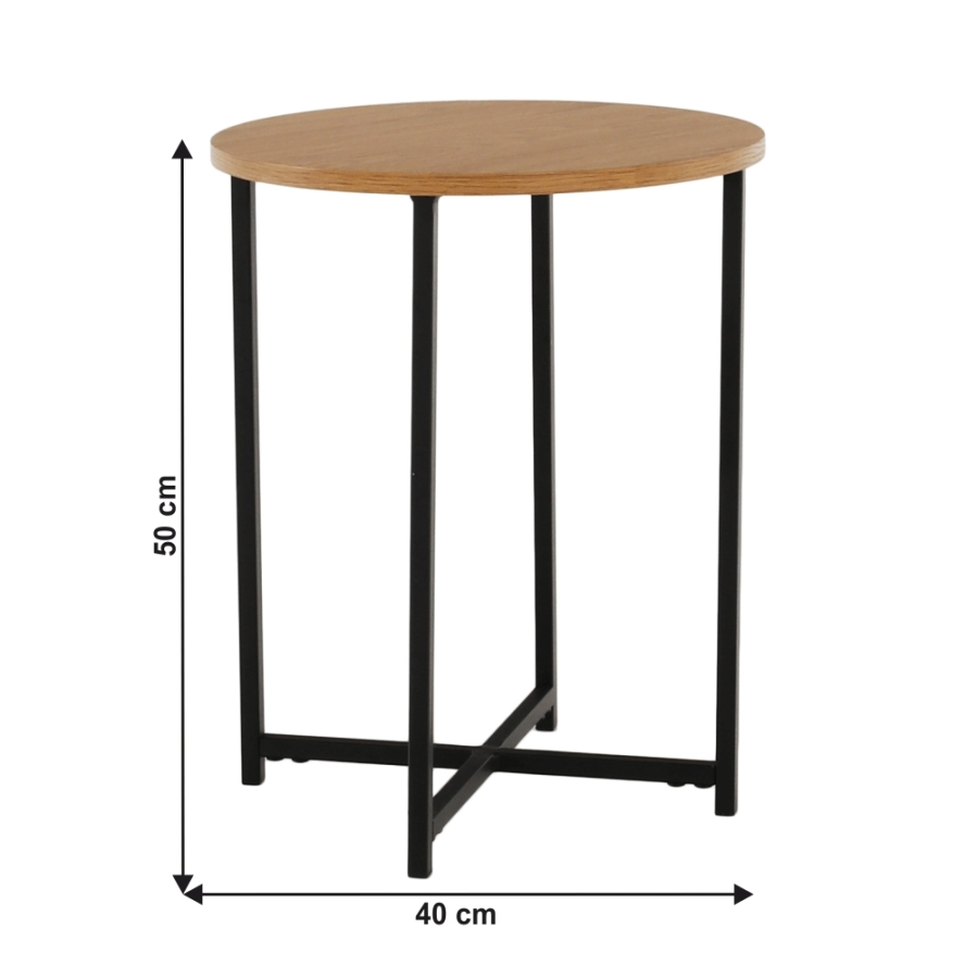 Kisasztal IMSAR Anyag: MDF/fém Szín: tölgyfa/fekete Méretek (átmérő x V): 40x50 cm Bontásban szállítva.