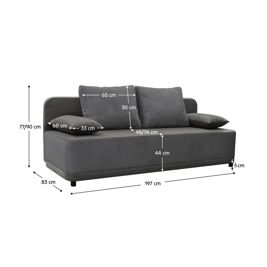 Méretek (SzxMéxMa): 197x83x77/90 cm