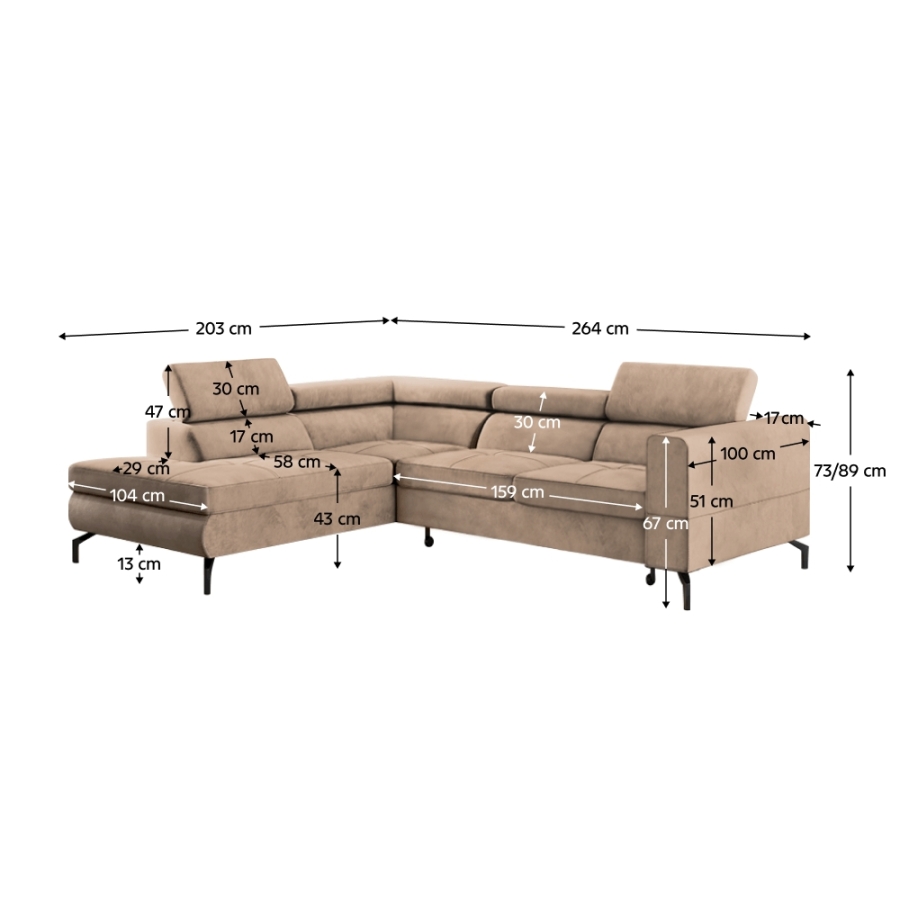 Méretek (SzxMéxMa): 264x203x73/89 cm
