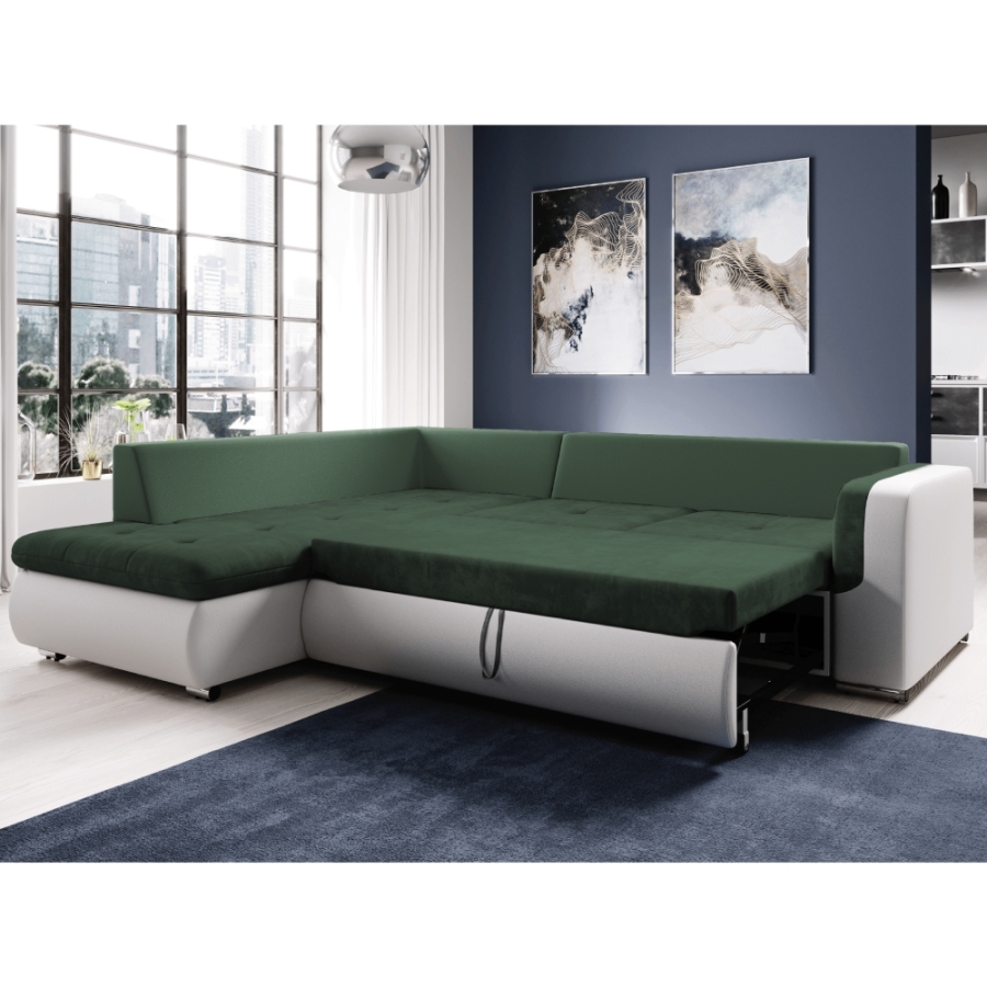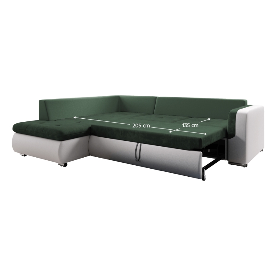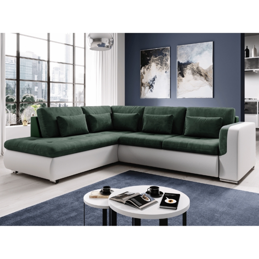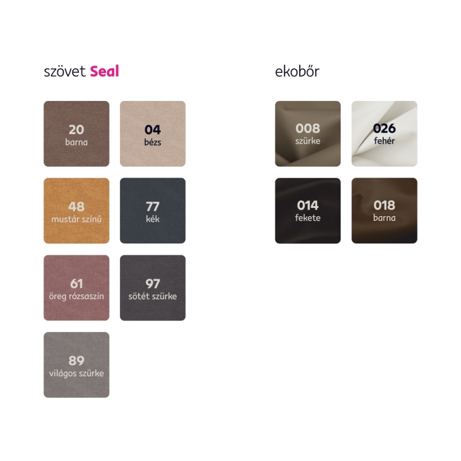 Anyag: ekobőr/szövet Seal 38 Az ekobőr kopásállósága a Martindale teszt szerint: 100 000 ciklus A szövet kopásállósága a Martindale teszt szerint: 80 000 ciklus Szín: fehér/zöld Méretek (SzxMéxMa): 245x205x65/75 cm Ülés magassága: 41 cm Ülés mélysége: 48/63 cm Az alsó tér magassága a padlótól: 3 cm Kinyitható Alvófelület (SzxHo): 135x205 cm Sarok Töltet: Falista rugó/pur hab Műanyag lábak Lábak színe: ezüst Teljesen kárpitozott Vízálló anyag Balos kivitelezés Párnákkal szállítva 5 nagy párna 5 díszpárna Nagy párna méretei (SzxMa): 62x39 cm Kis párna méretei (SzxMa): 46x26 cm Szétszerelve szállítva A kanapét megrendelheti az ekobőr 4 színváltozatában és a Seal szövet 7 színváltozatban ár 382 500 Ft. Egyedi megrendelés esetén az összeg 10%-át előlegként szükséges befizetni. Az előleg befizetése után a megrendelése gyártásba kerül. A szállítási idő 6-8 hét.