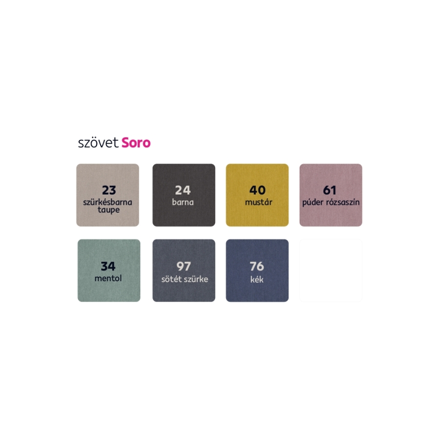 Anyag: szövet Soro 90 A szövet kopásállósága a Martindale teszt szerint: 90 000 ciklus Szín: világosszürke Méretek (SzxMéxMa): 250x183x76/90 cm Ülés magassága: 42 cm Ülés mélysége: 60 cm Az alsó tér magassága a padlótól: 12 cm Kinyitható Alvófelület (SzxHo): 130x195 cm Háttámla magassága: 50 cm Ottomán szélessége: 91 cm Karfa (MéxMa): 23x61 cm Teherbírás: 90 kg Sarok Tárhellyel Dekoratív steppelés Rugós töltet 5 állítható fejtámla Fém lábakon Lábak színe: fekete Töltet: Falista rugó/pur hab T30 Teljesen kárpitozott Jobbos kivitelezés Díszpárnák nélkül szállítva Szétszerelve szállítva A kanapé a Soro szövet 7 színváltozatában megvásárolható ár 476 500 Ft. Egyedi megrendelés esetén az összeg 10%-át előlegként szükséges befizetni. Az előleg befizetése után a megrendelése gyártásba kerül. A szállítási idő 6-8 hét.