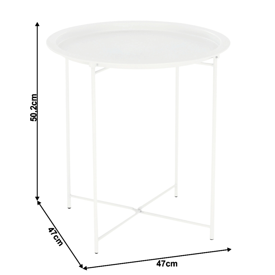 Anyag: fém Szín: fehér Méretek (SzxMéxMa): 47x47x50,2 cm Terhelhetőség: 8 kg Szilárd szerkezet Fém szerkezet Levehető tálcával Retro stílus Szétszerelve szállítjuk
