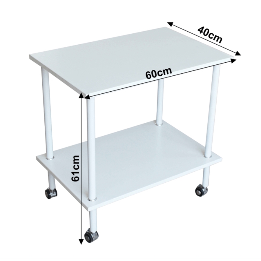 Kisasztal kerekekkel LABON Anyag: MDF/fém Szín: matt fehér Méretek (SzéxMéxMa): 60x40x61 cm Szállítás szétszerelve.
