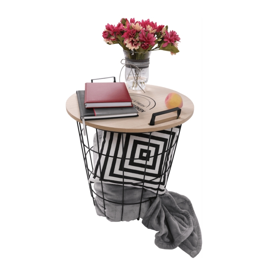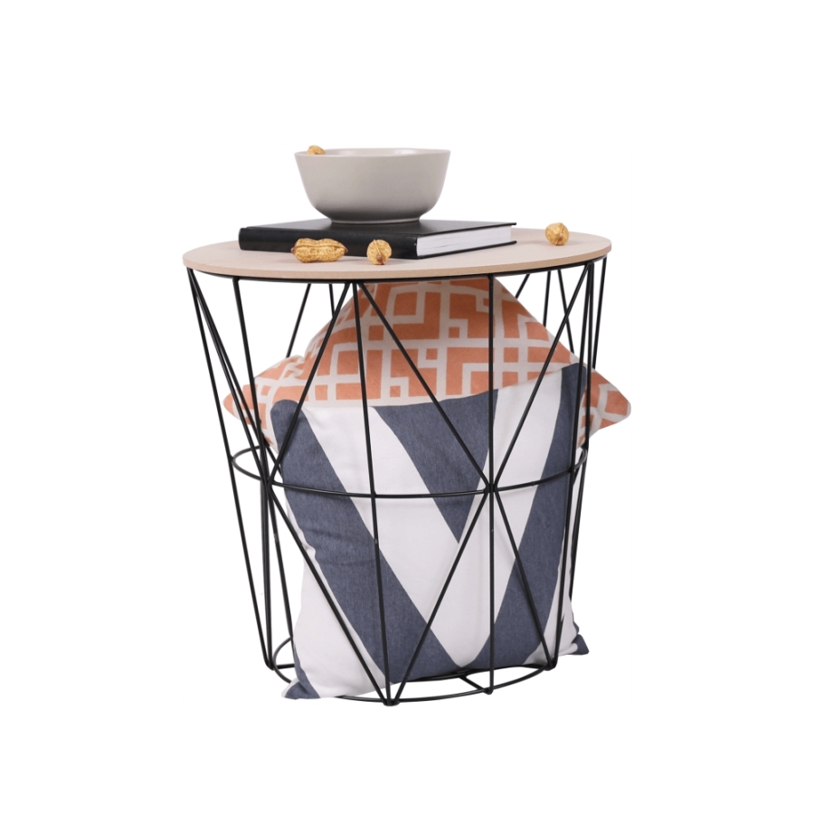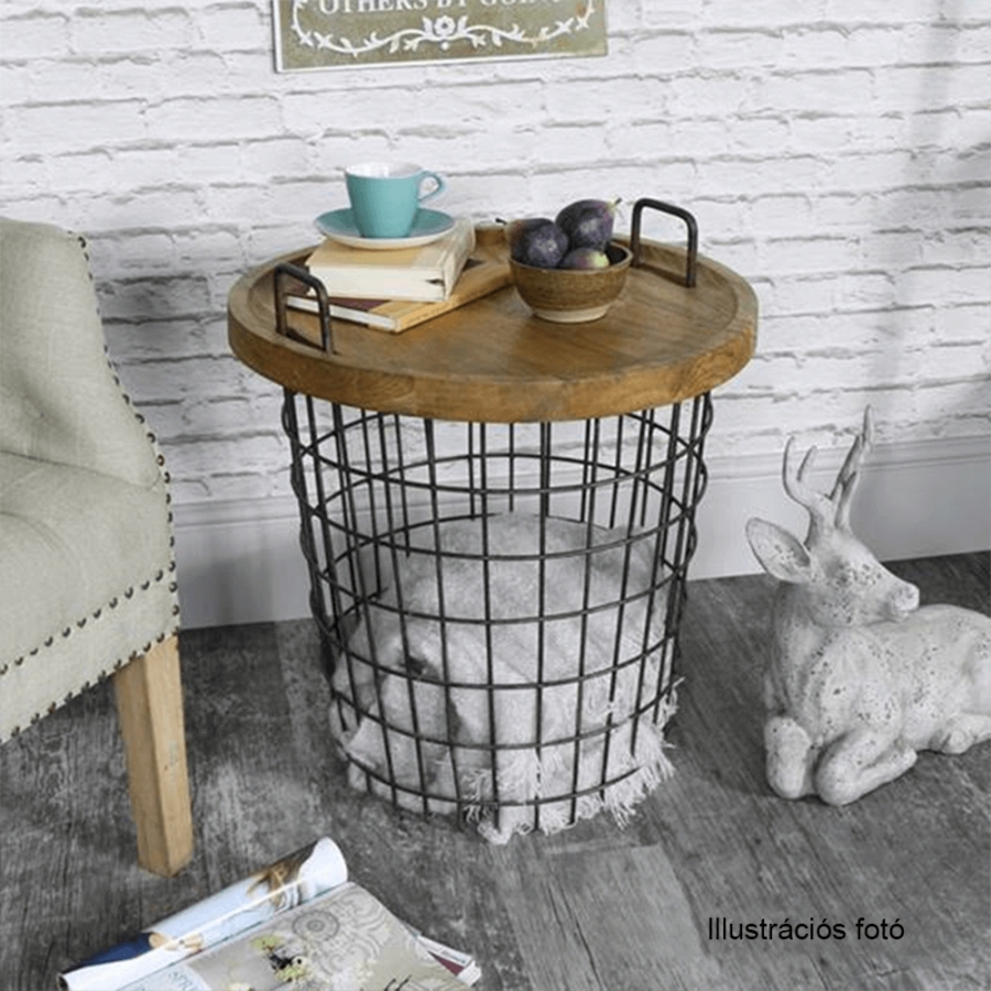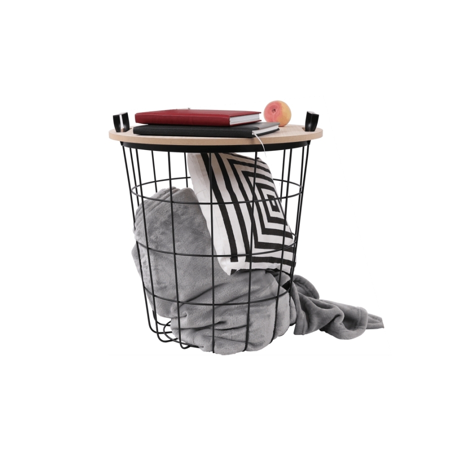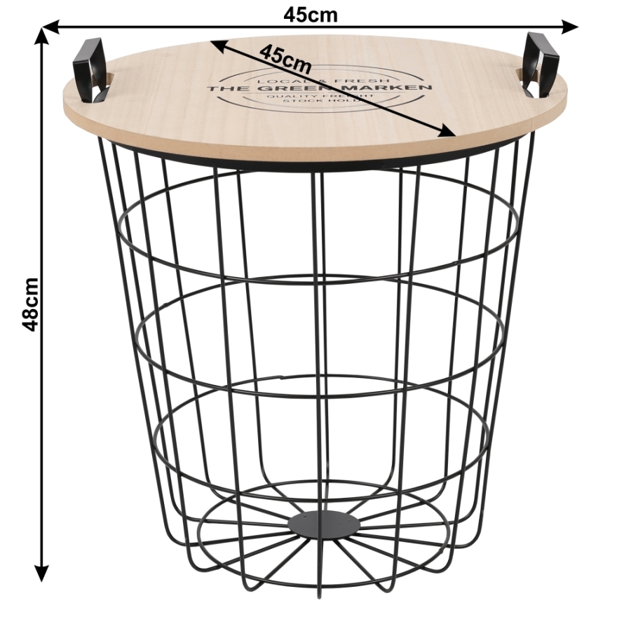 Kisasztal NANDO Anyag: MDF/fém Szín: természetes minta/fekete Méretek (SzéxMéxMa): 45x45x48x cm Szállítás szétszerelve.