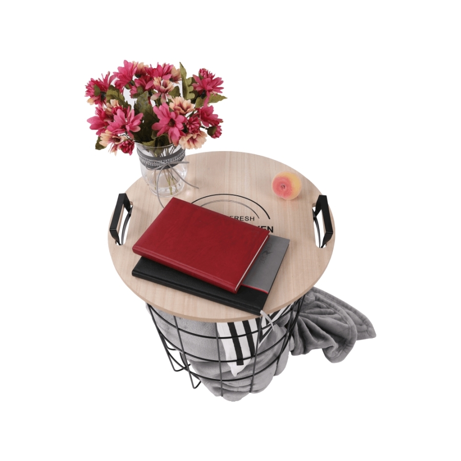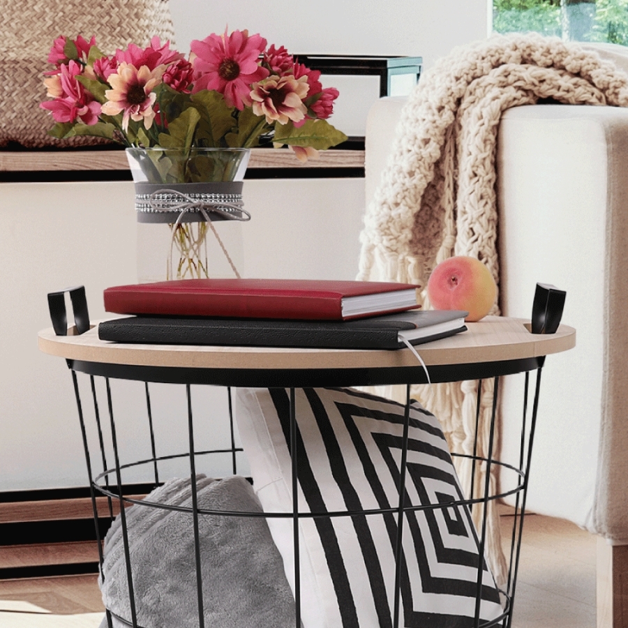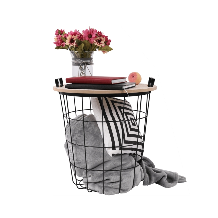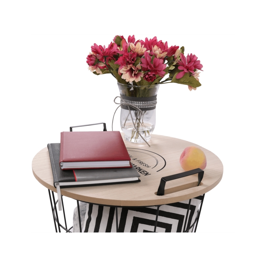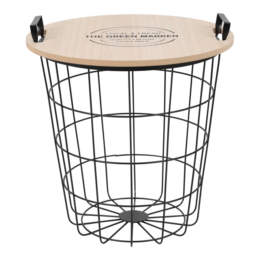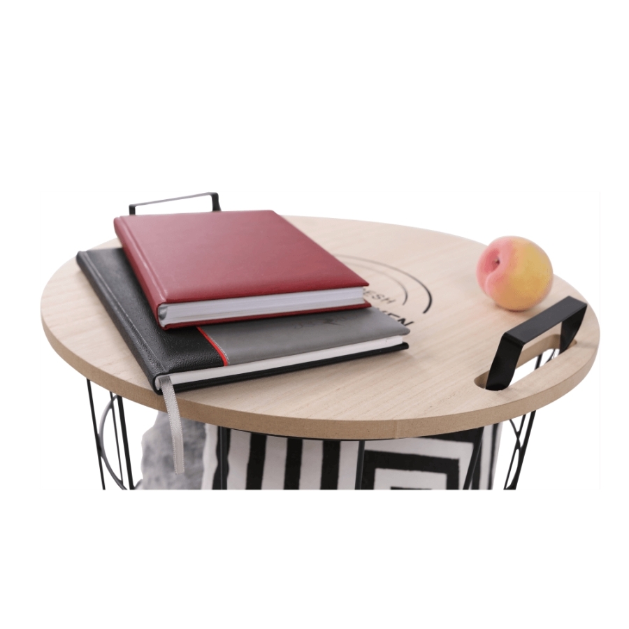 Kisasztal NANDO Anyag: MDF/fém Szín: természetes minta/fekete Méretek (SzéxMéxMa): 45x45x48x cm Szállítás szétszerelve.