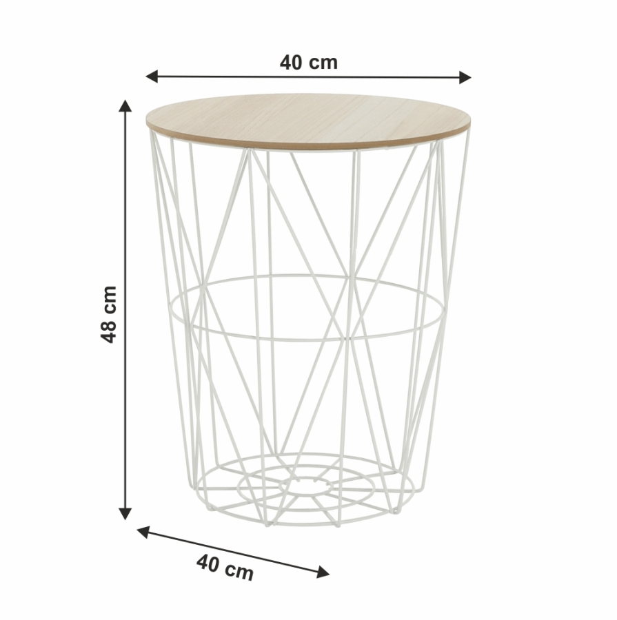 Kisasztal NANCER 3 Anyag: MDF/fém Színe: natúr/fehér Méretek (SzéxMéxMa): 40x40x48 cm Lapraszerelten szállítva