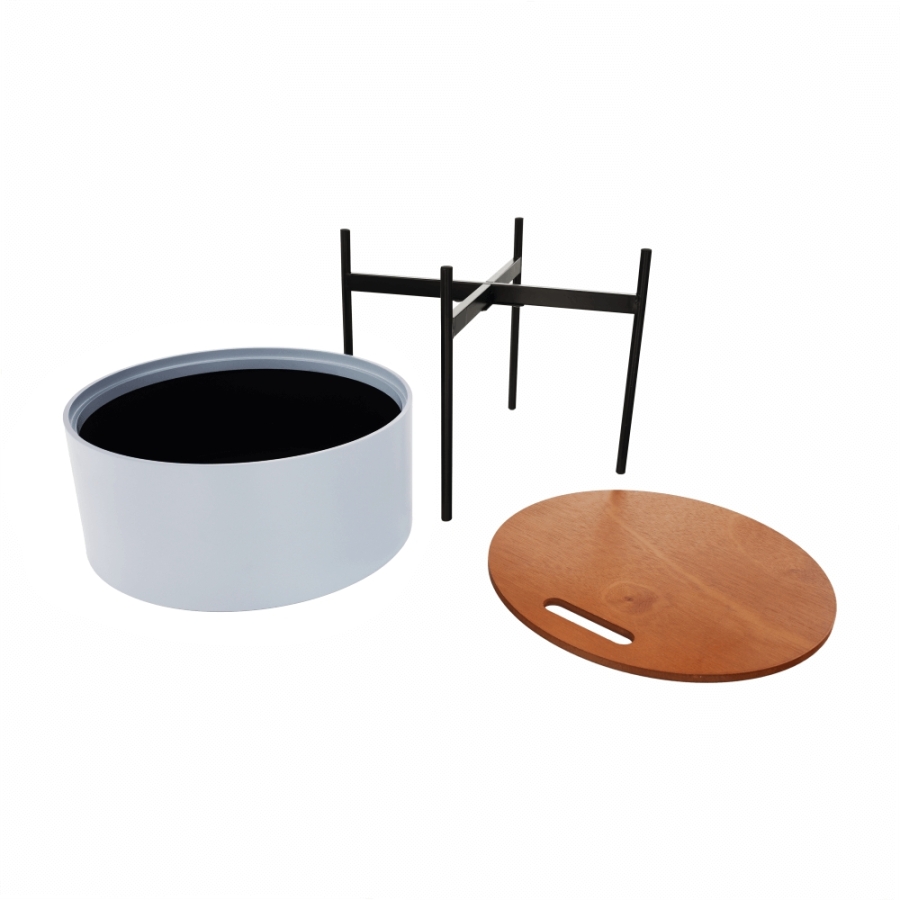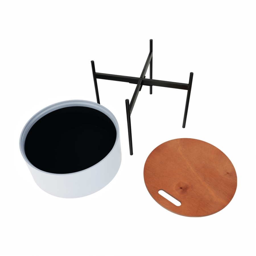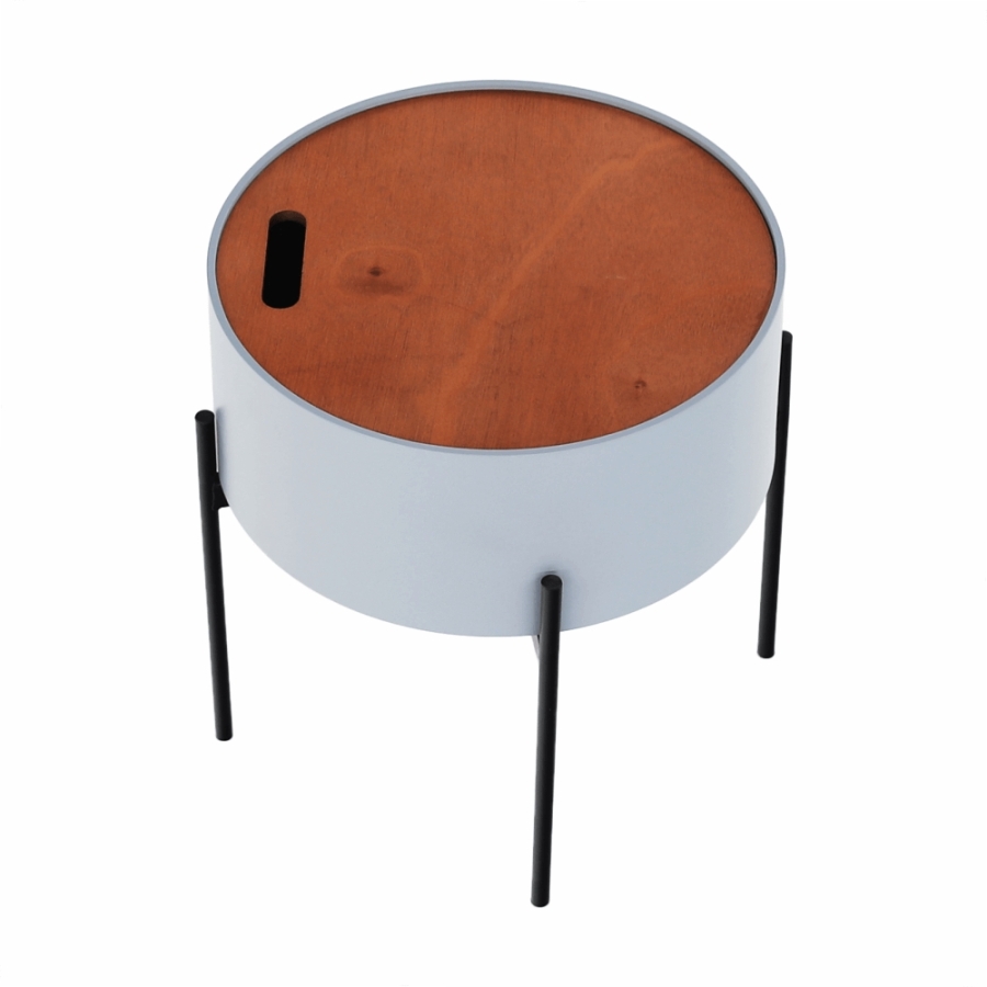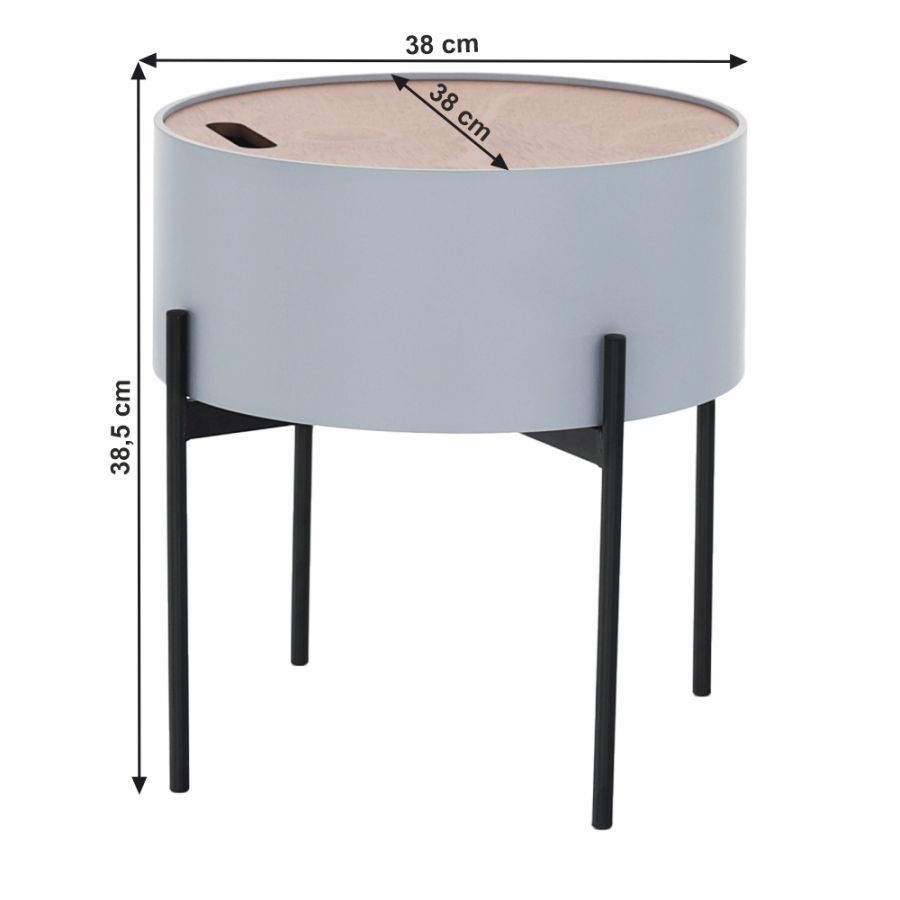 Anyag: MDF/fém Szín: szürke/természetes/fekete Méretek (SzxMxMa): 38x38x38,5 cm Teherbírás: 30 kg Levehető fedő Tárolóhellyel Szétszerelve szállítjuk