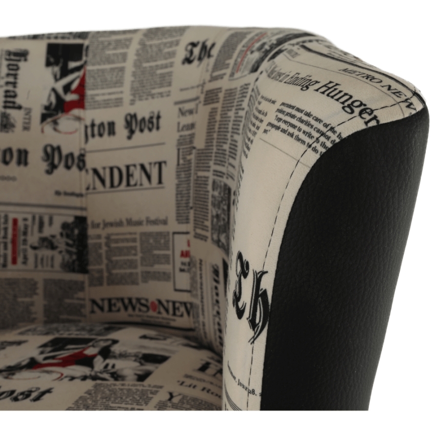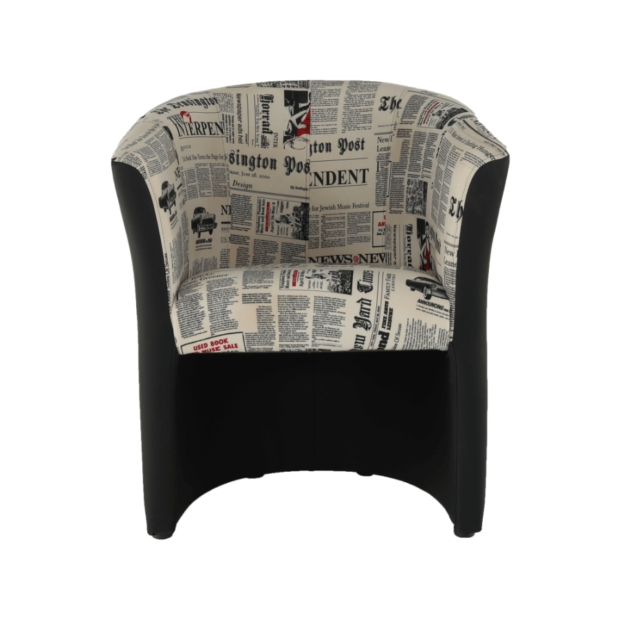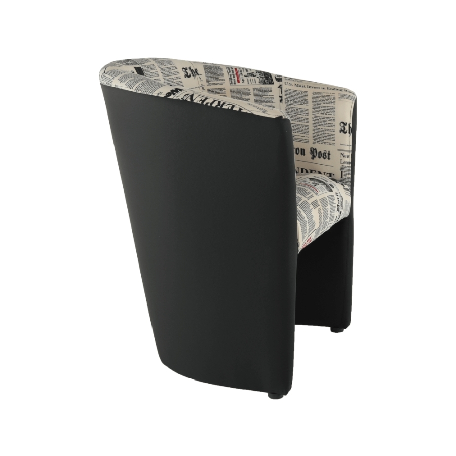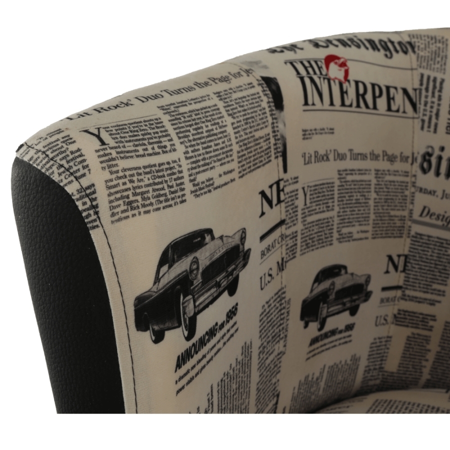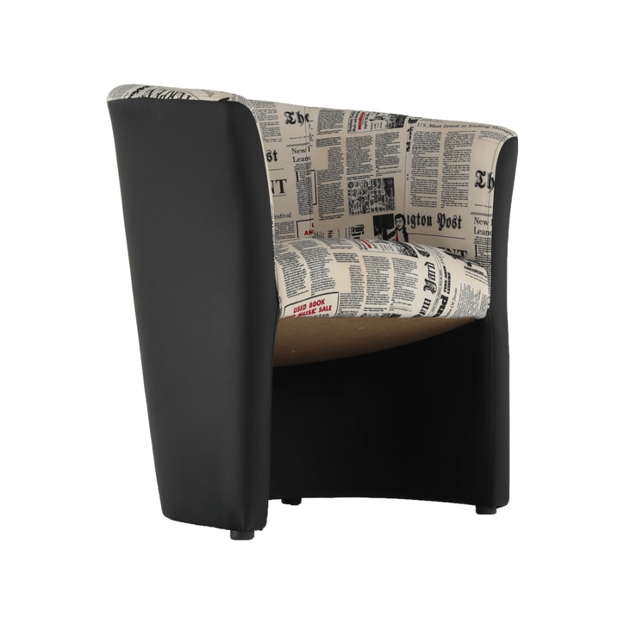 Klub fotel, textilbőr fekete/szövet újságminta, CUBA