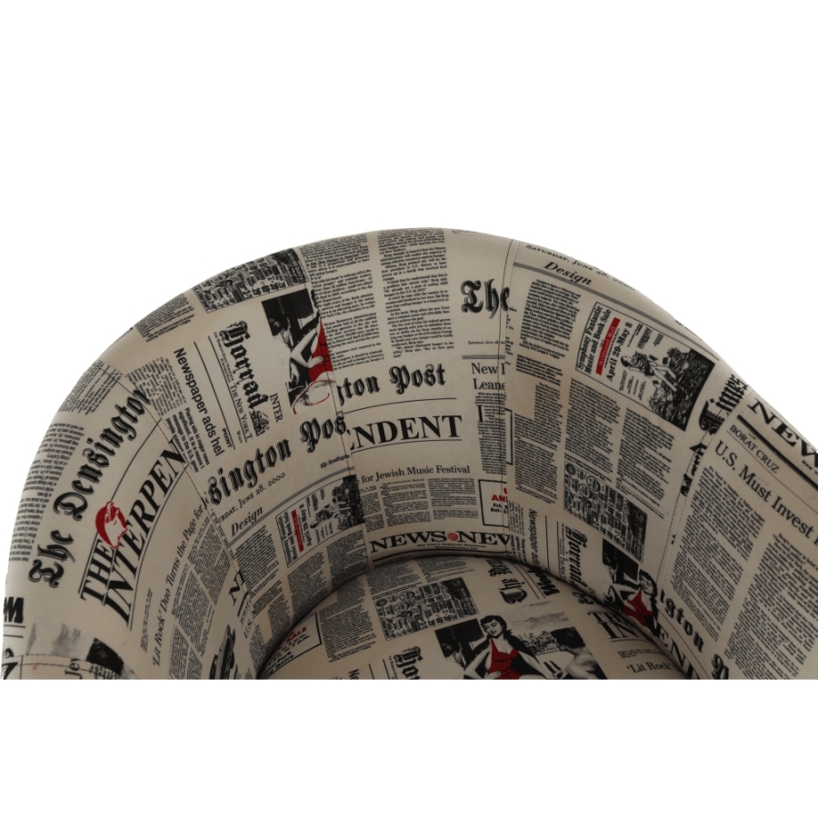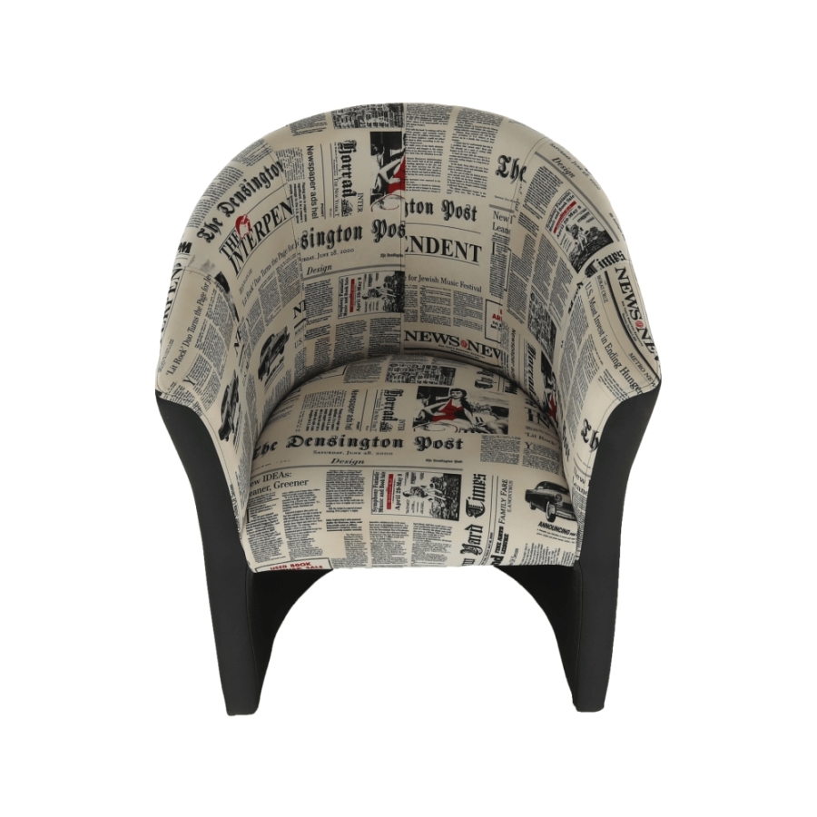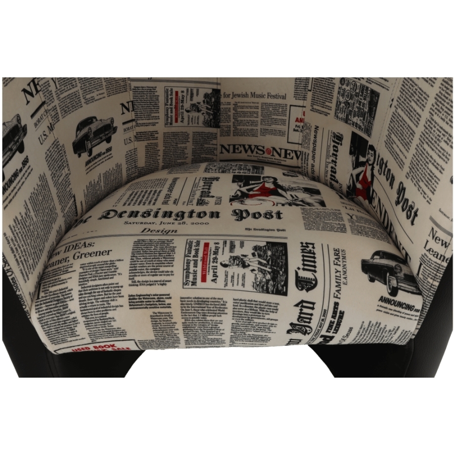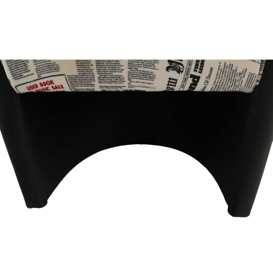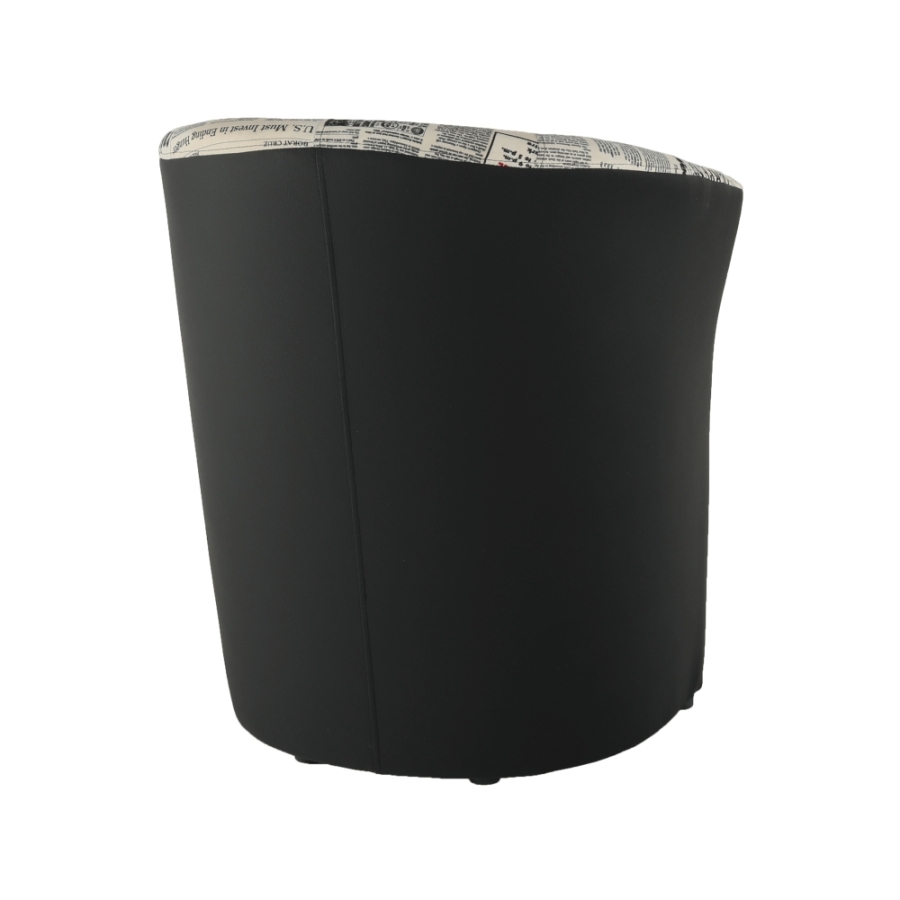 Klub fotel, textilbőr fekete/szövet újságminta, CUBA