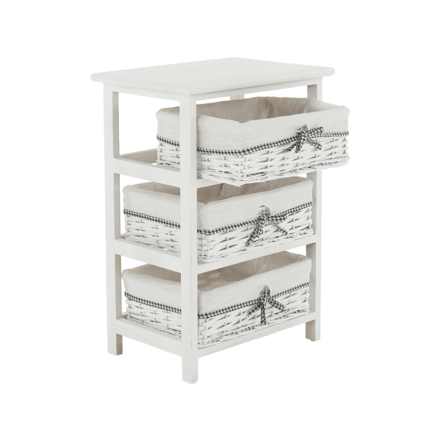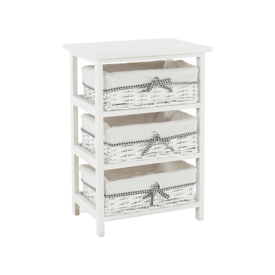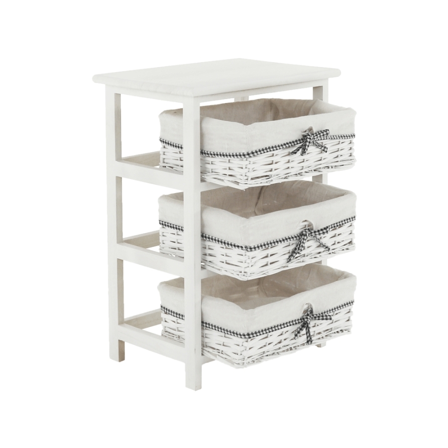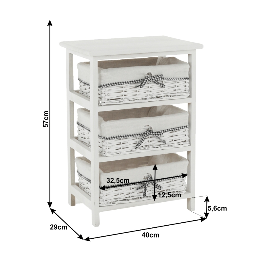 Komód stabil kerettel és 3 fonott kosárral Anyag: fa / vessző Méretek (SzéxMaxMé): 40x57x29 cm