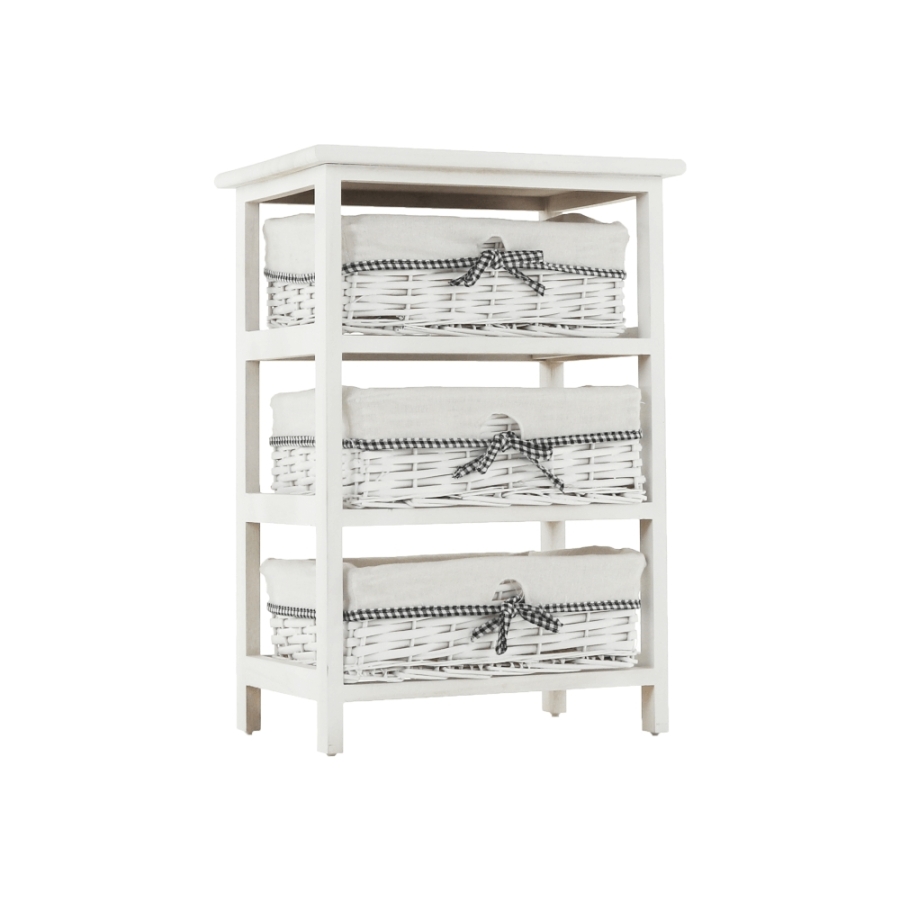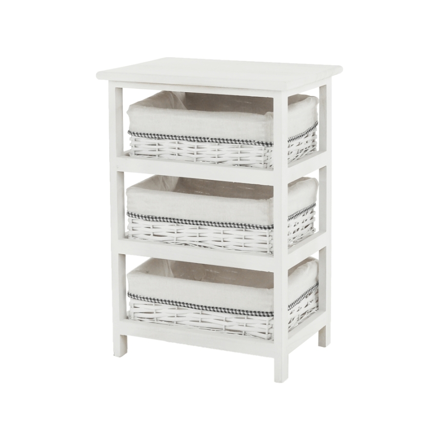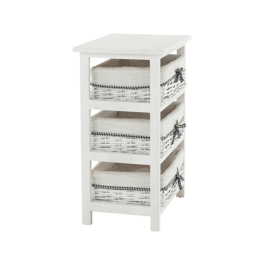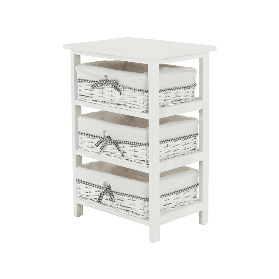 Komód stabil kerettel és 3 fonott kosárral Anyag: fa / vessző Méretek (SzéxMaxMé): 40x57x29 cm