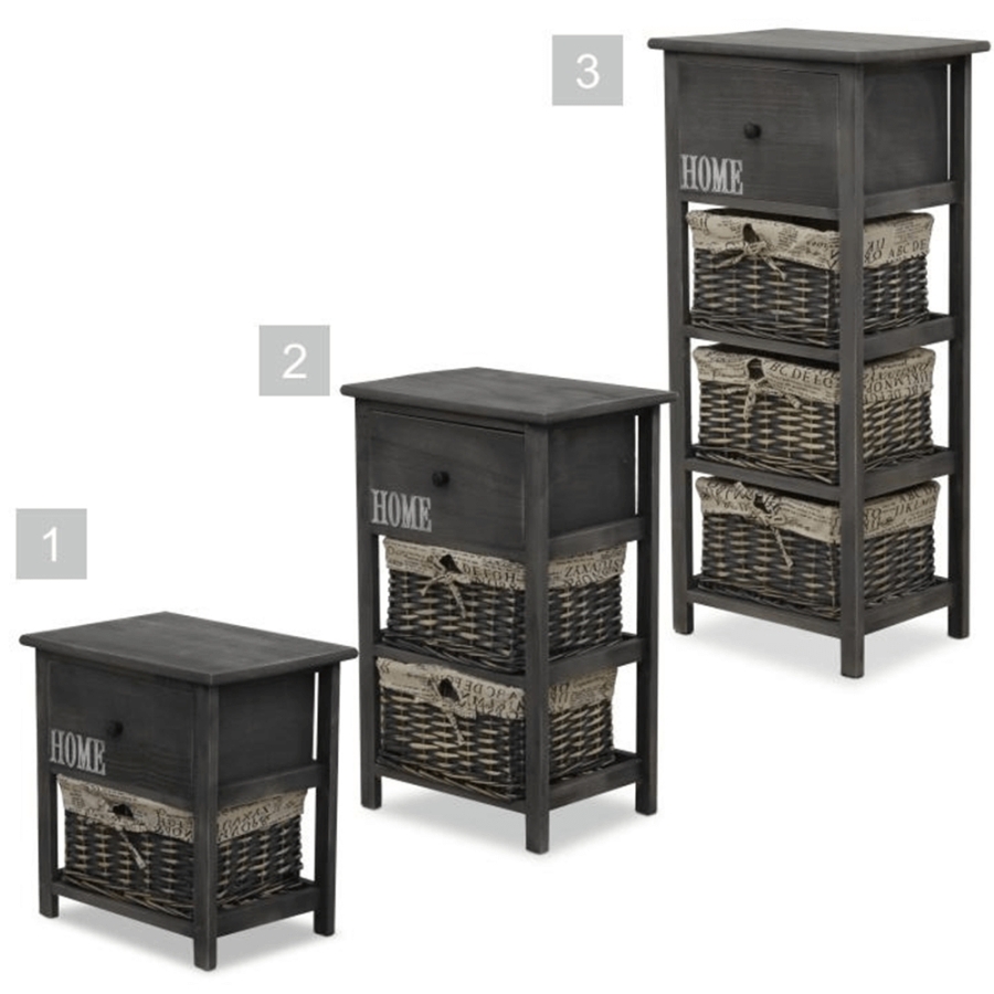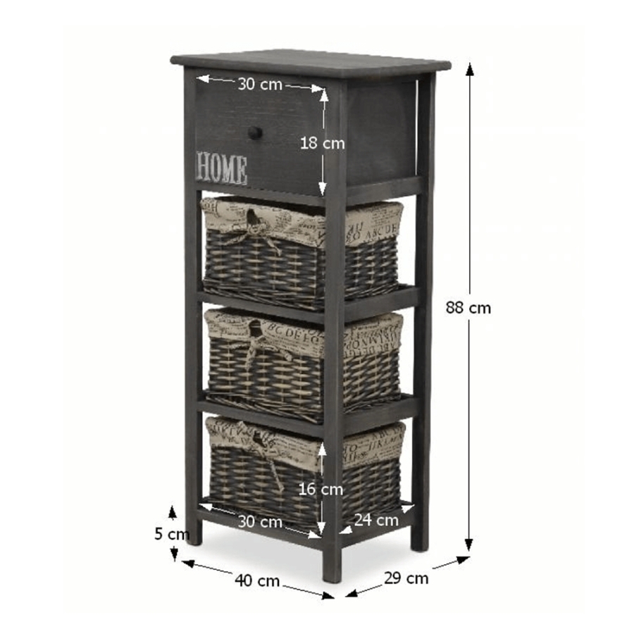 Komód szilárd kerettel, Fiókkal és 3 fonott kosárral Anyag: fa / vessző Színváltozat: sötétbarna Méret (SzéxMaxMé): 40x88x29 cm