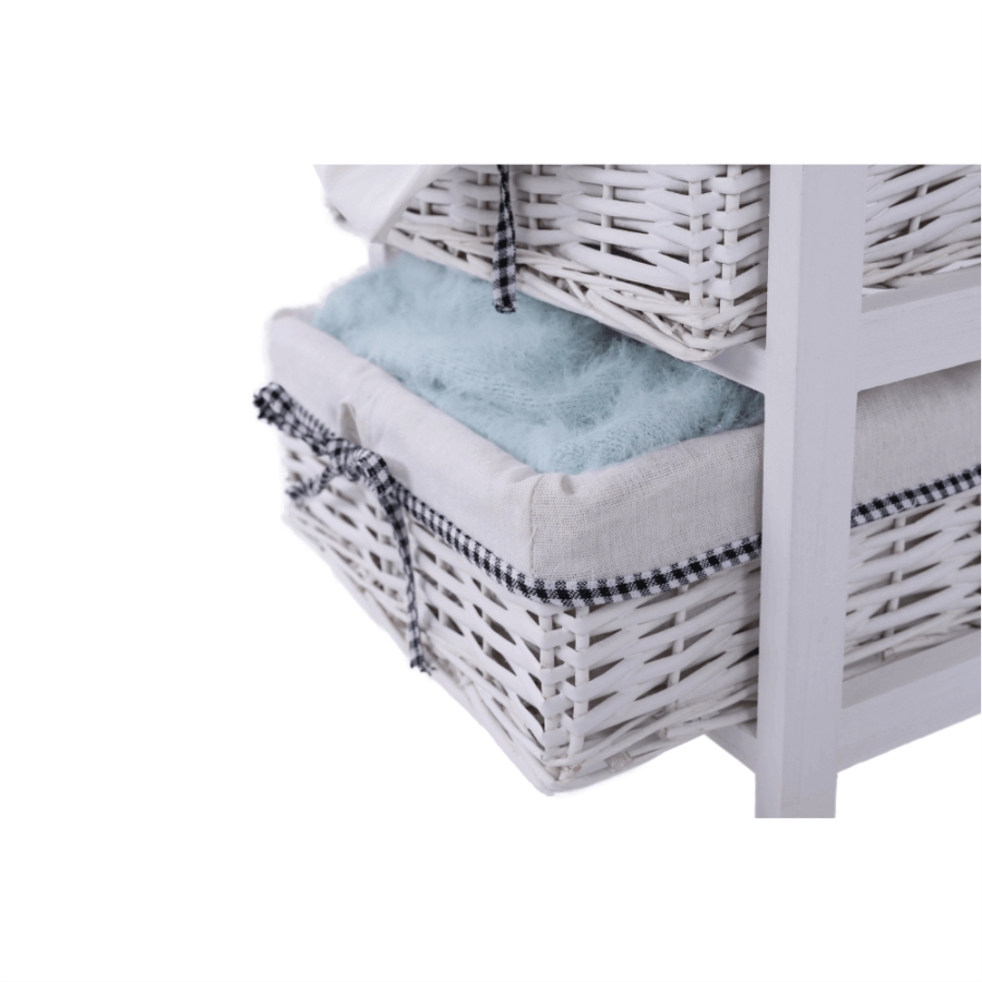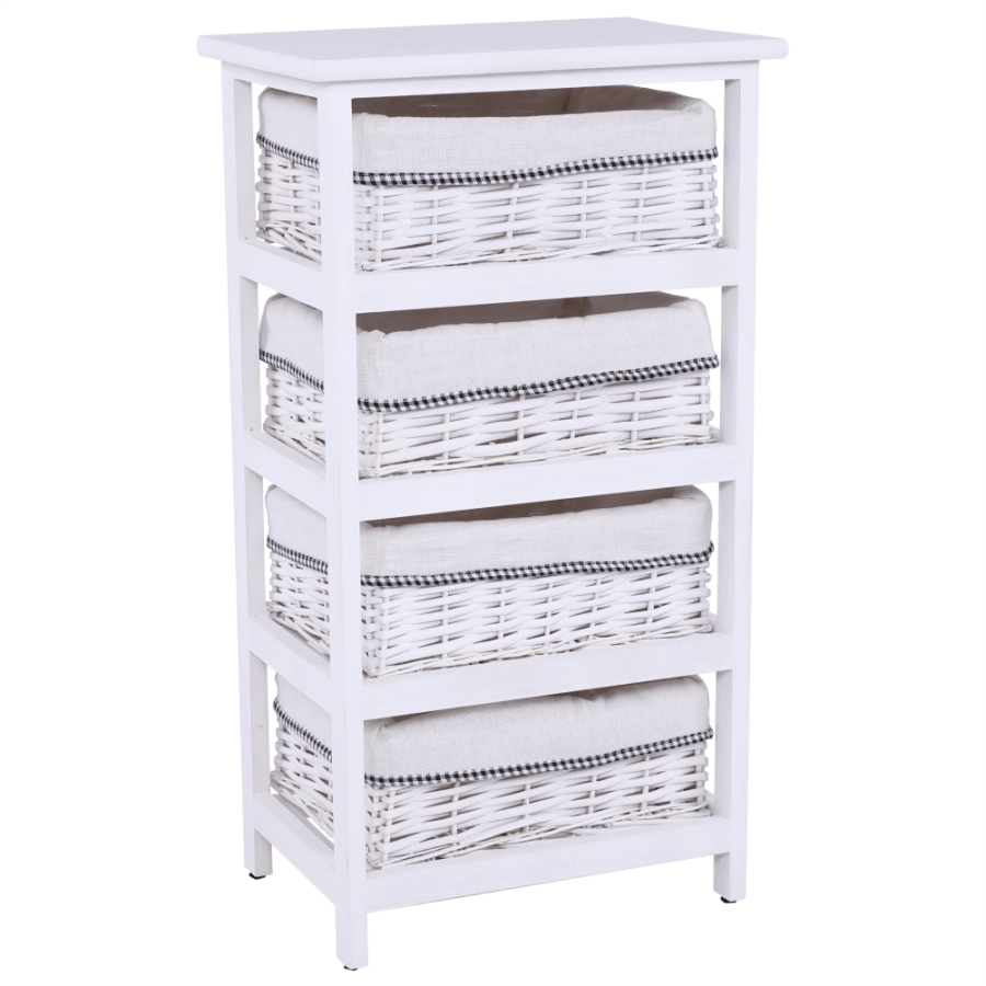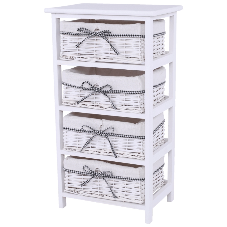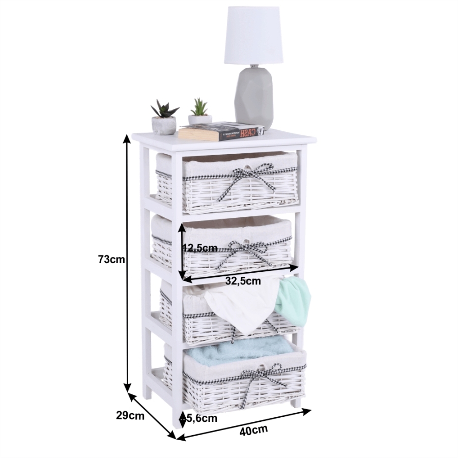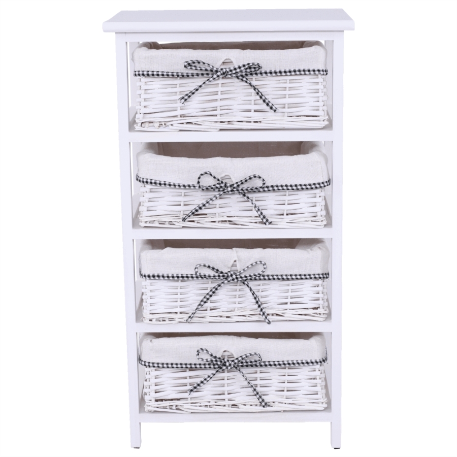 Komód szilárd kerettel és 4 fonott kosárral Anyag: fa / vessző, Méretek (SzéxMaxMé): 40x73x29 cm