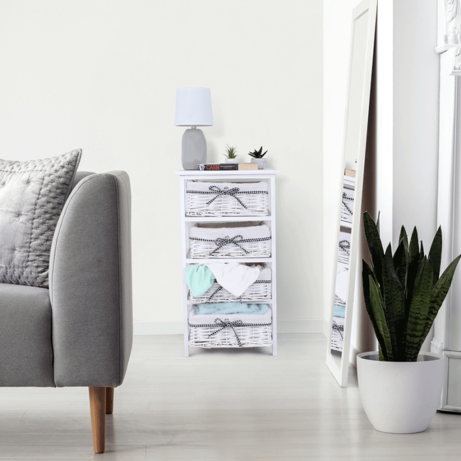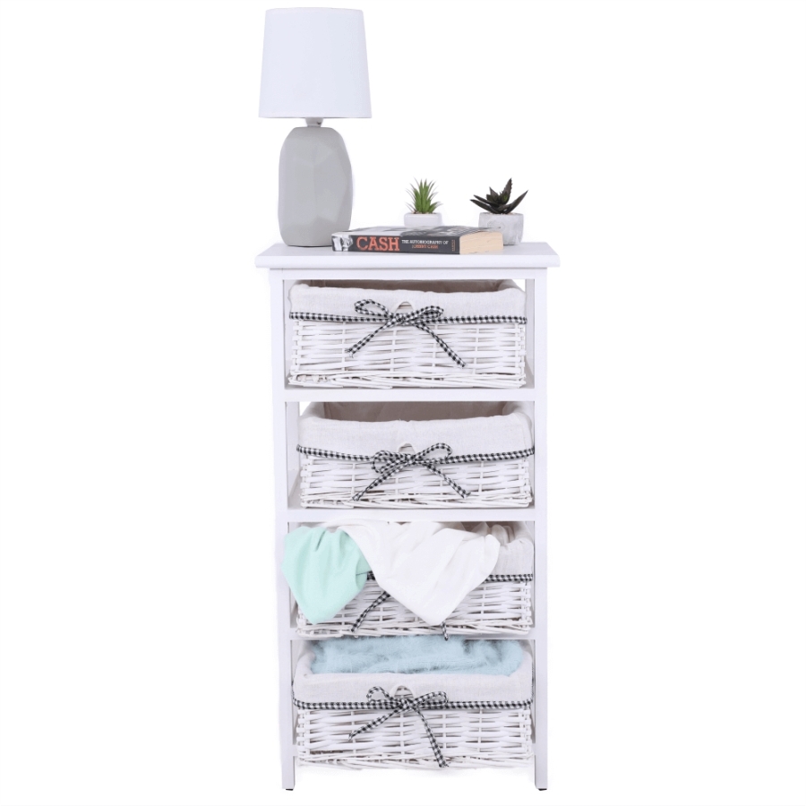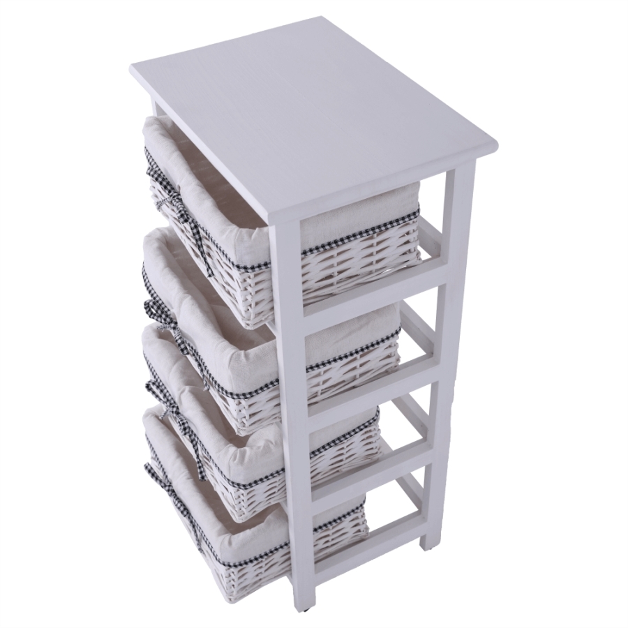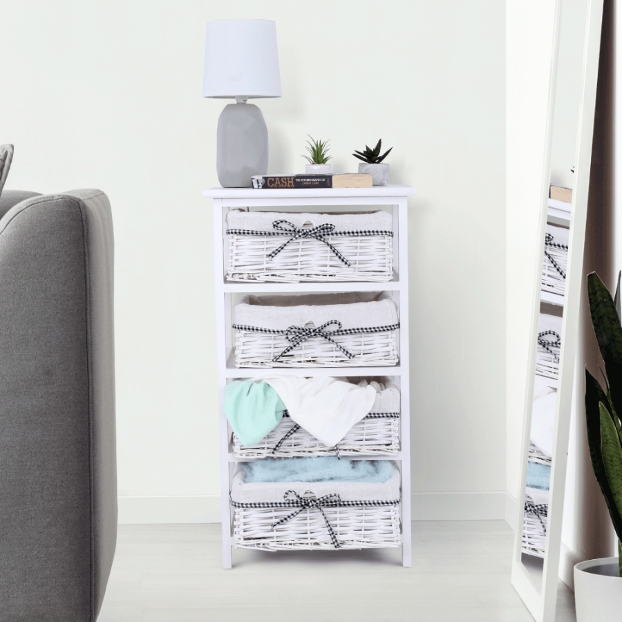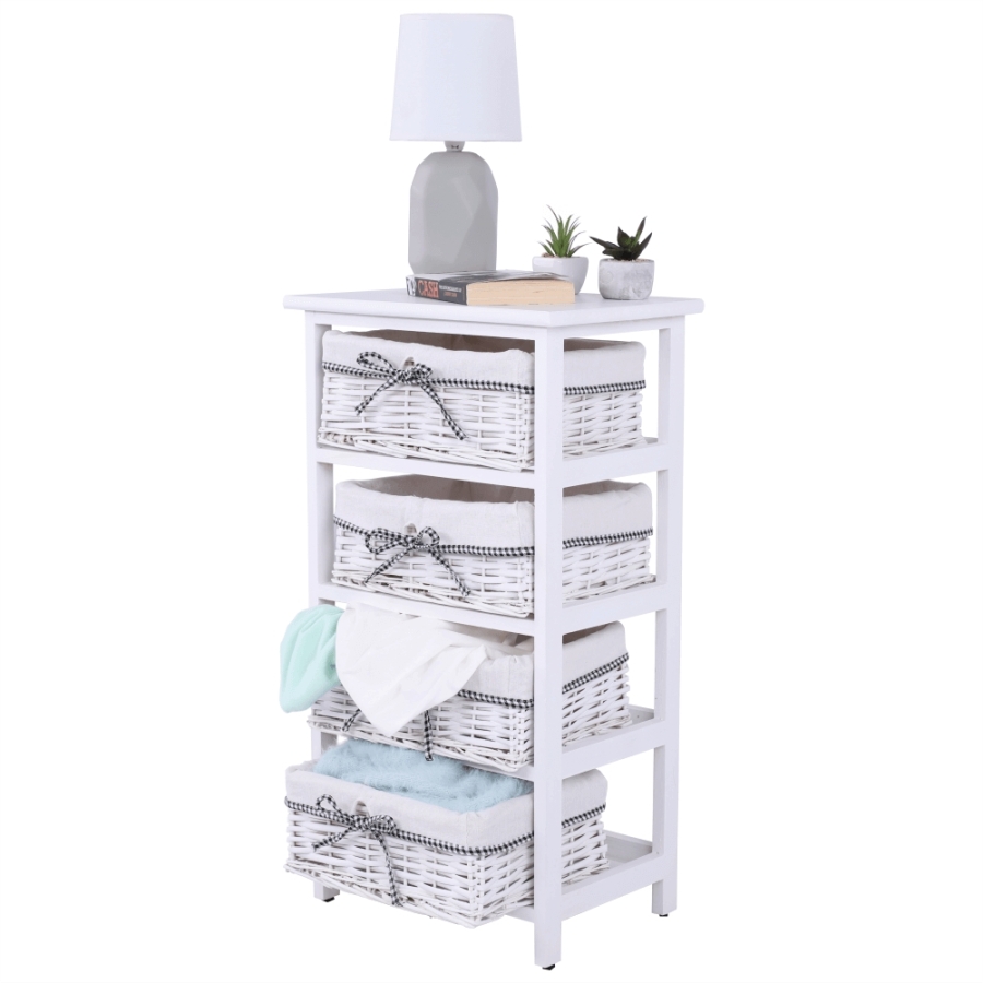 Komód szilárd kerettel és 4 fonott kosárral Anyag: fa / vessző, Méretek (SzéxMaxMé): 40x73x29 cm