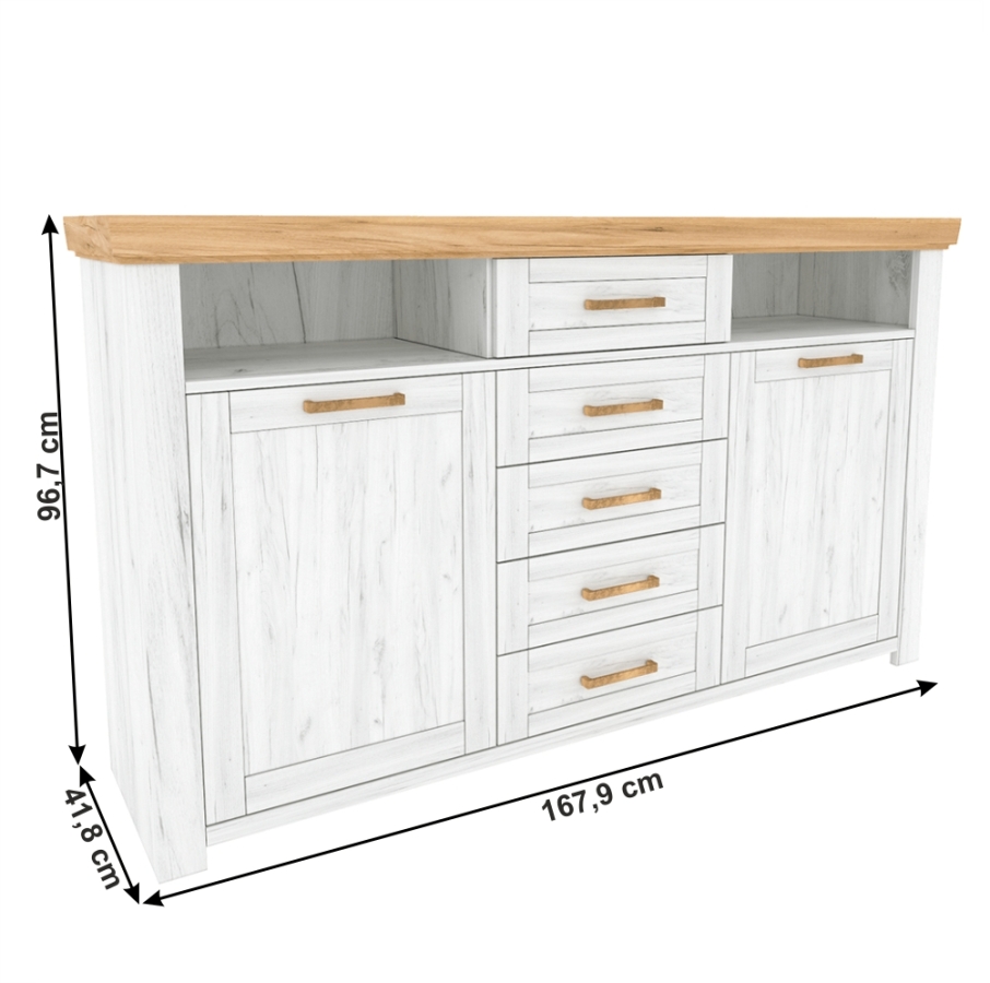 Komód E, tölgy craft arany/tölgy craft fehér, SUDBURY