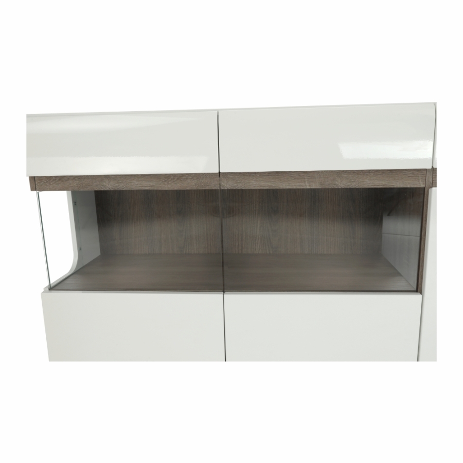 Komód, fehér - extra magas fényű HG/trufla sonoma tölgy, LYNATET 42