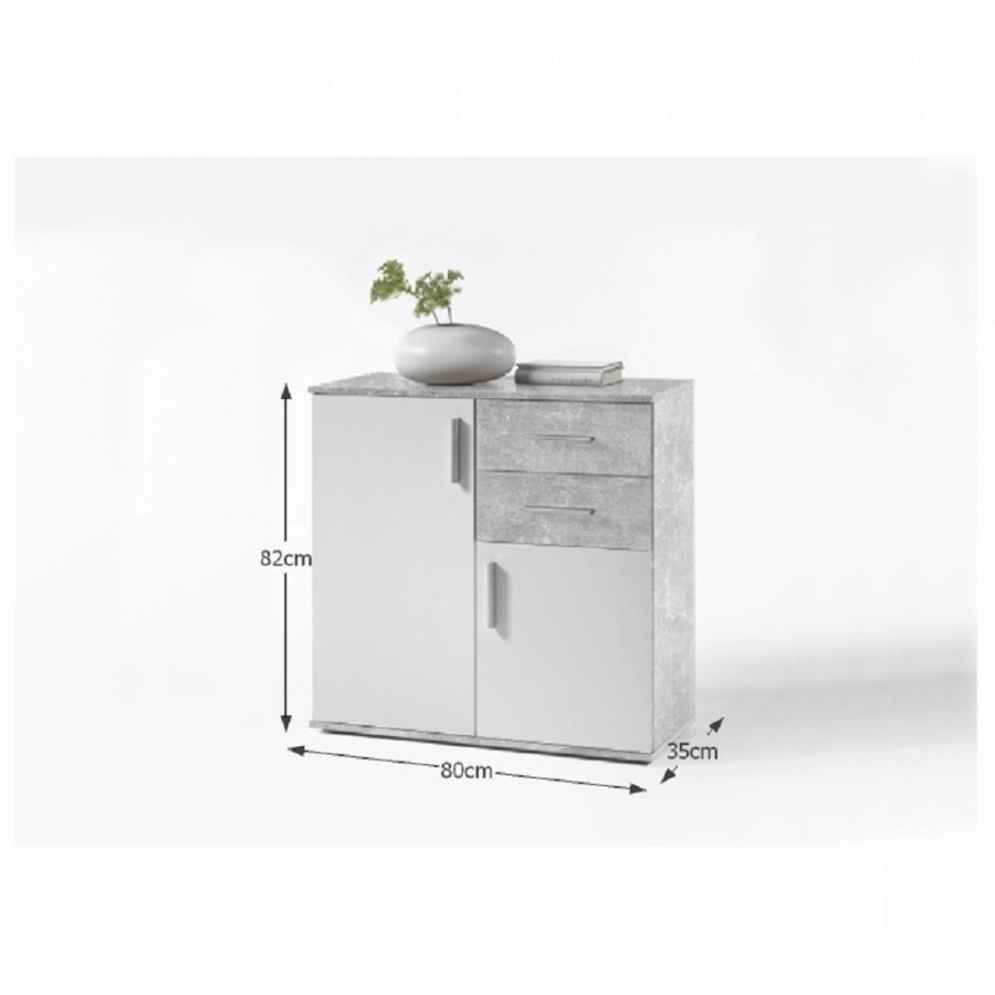 Komód POPPY 4 Anyag: laminált DTD Színváltozat: fehér/beton Méretek (SzéxMéxMa): 80x35x82 cm Lapraszerelten szállítva