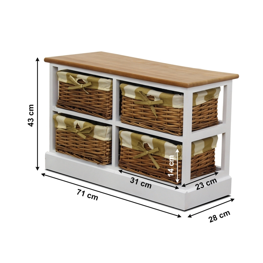 Komód GINGER 4 - 4 fonott kosárral fehér és mézes színváltozat kombinációjában,