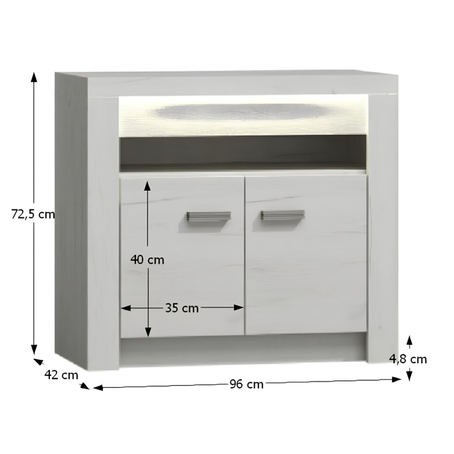 Komód 10 luxus elemes bútor kínálatunkból Váz vastagsága: 48 mm, fém fogantyúk Anyag: laminált DTD, ABS élek Színváltozat: fehér kőris Méretek (SzéxMéxMa): 96x42x72,5 cm LED világítás hozzárendelhető Szétszerelt állapotban szállítjuk