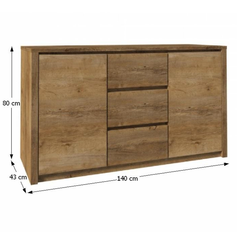 Komód, MONTANA K2DP Anyag: laminált DTD, ABS élek Színváltozat: sötét lefkas tölgy Méretek (SzéxMéxMa): 140x43x80 cm Anyagvastagság: 15 mm Szállítás: szétszerelve