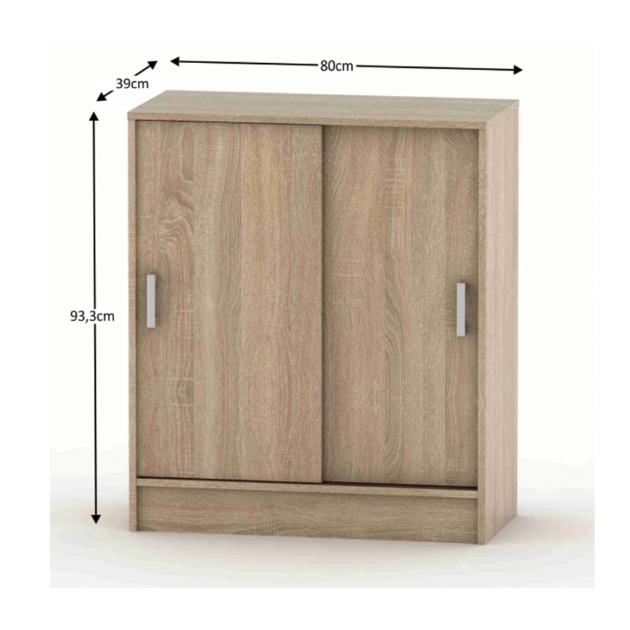 Komód tolóajtóval és két polccal BETTY 4 Anyag: laminált DTD Színe: sonoma tölgy Méretek (SzéxMéxMa): 80x39x93,3 cm Szállítás szétszerelve. Lamino vastagsága: 1,6 cm Szlovák termék.