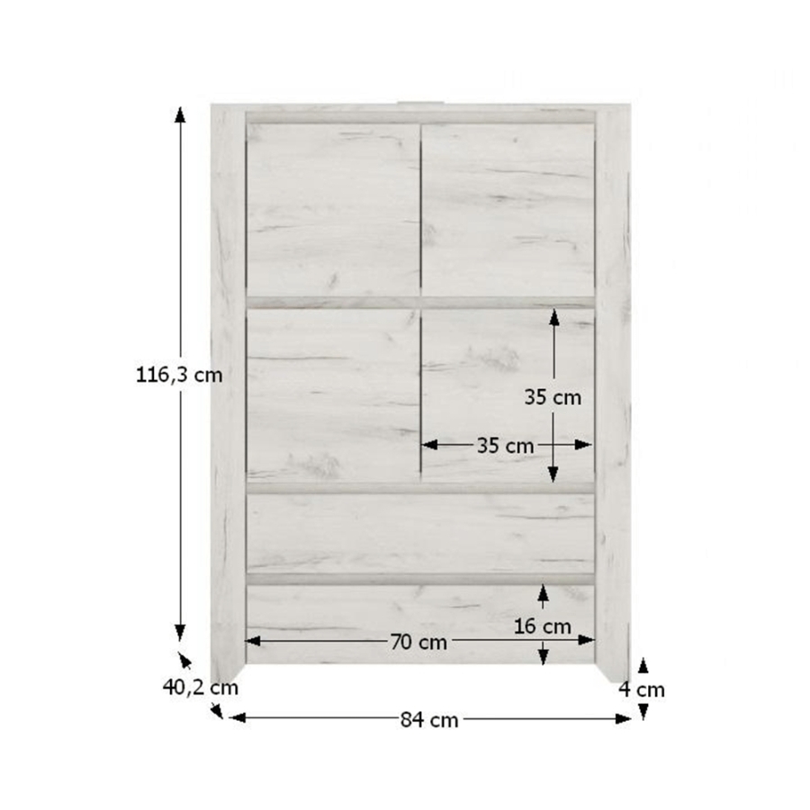 Méretek (SzéxMéxMa): 84x40,2x116,3 cm
