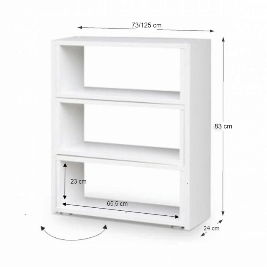 Modern többfunkciós könyvespolc KLOE III Anyag: laminált DTD Színváltozat: fehér Méretek (SzéxMéxMa): 73-125x24x83 cm Szállítás szétszerelve