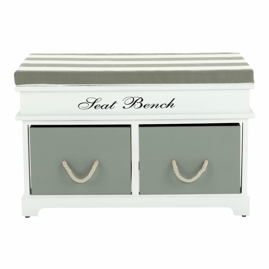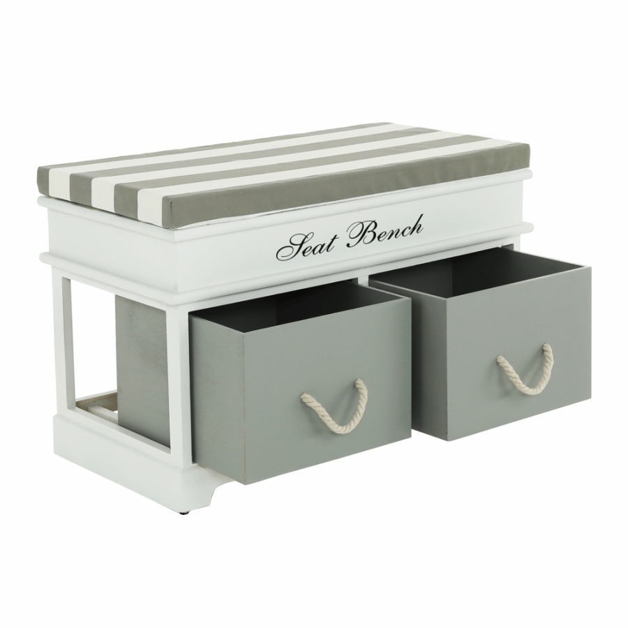 Lóca párnával, 2 fiók, fehér/szürke, SEAT BENCH 2 NEW