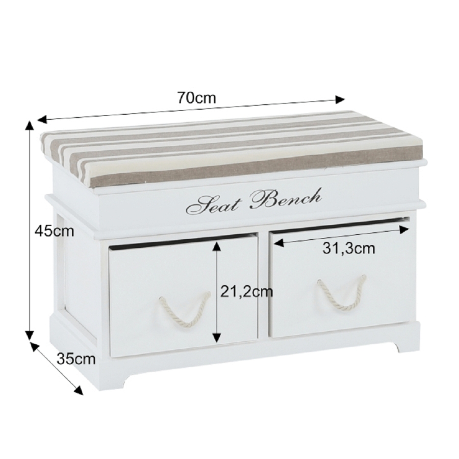 Lóca párnával, 2 fiók, fehér/világosbarna, SEAT BENCH 1 NEW