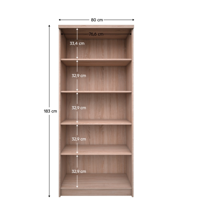 Magas nyitott polcos szekrény 80 TOPTY TYP 27 Anyag: laminált DTD Szín: sonoma tölgy Méretek (SzxMéxMa):80x33x183 cm Nyitott Polcos Tárhely Szétszerelve szállítva