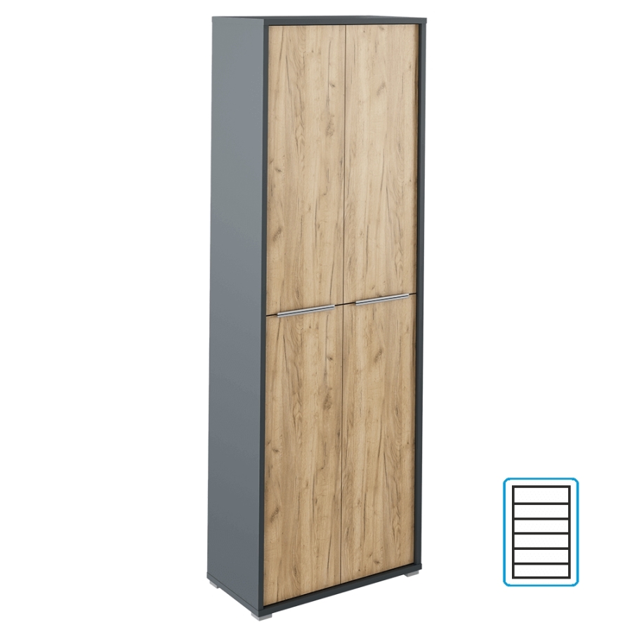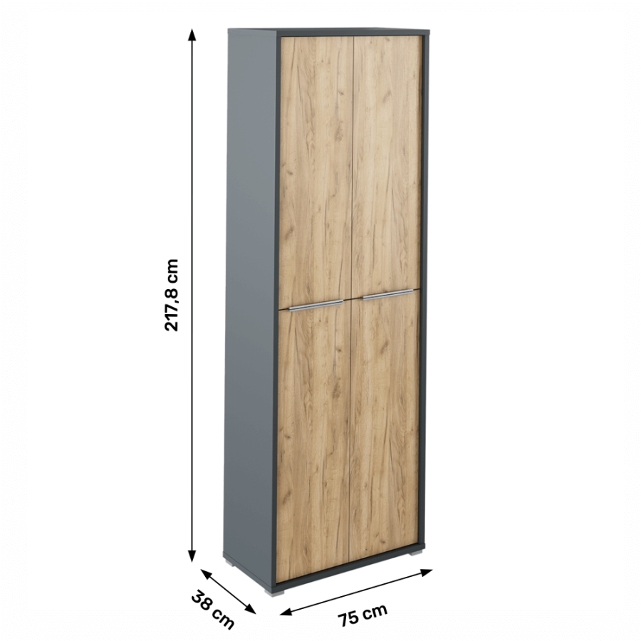 Magas szekrény polcokkal, grafit/tölgyfa artisan, RIOMA NEW TYP 05