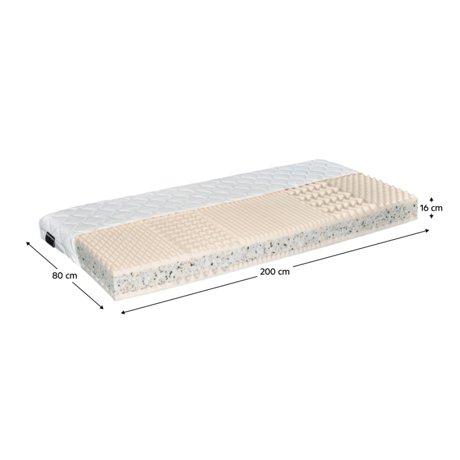 5 zónás, maximálisan légáteresztő hab nedvességelvezetéssel, kétoldalas, használható szilárd alátéten vagy állítható ágyrácson