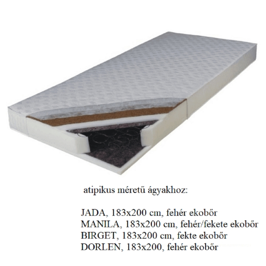 A matrac 183x200 cm-es atipikus méretben van. Kifejezetten ilyen belső méretű ágyakhoz készült. Az alábbi ágyakhoz ajánlott matrac: