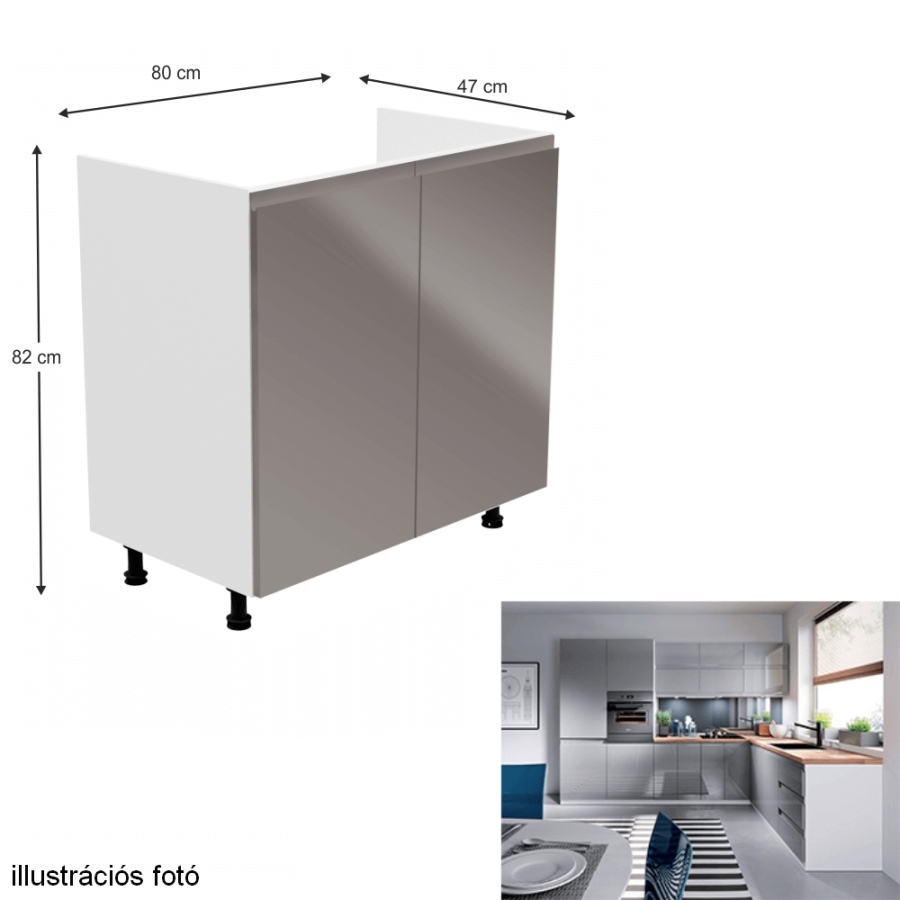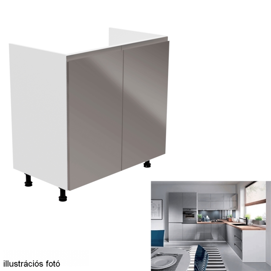 Mosogatószekrény, fehér/szürke extra magasfényű, AURORA D80Z