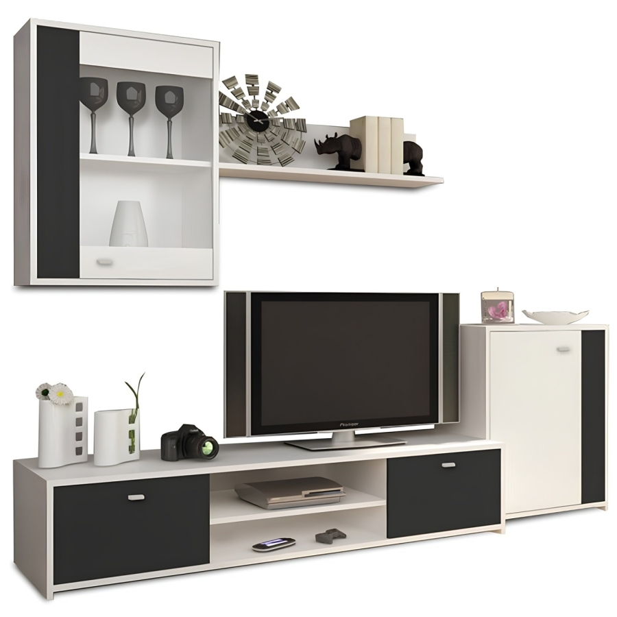 Nappali bútor GENTA fehér/fekete színváltozatban. Anyag: laminált DTD és ABS élek.