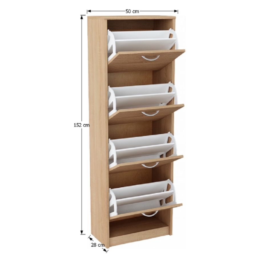 Négyrészes cipősszekrény, tölgy sonoma/fehér, VIVAT NEW TYP 3